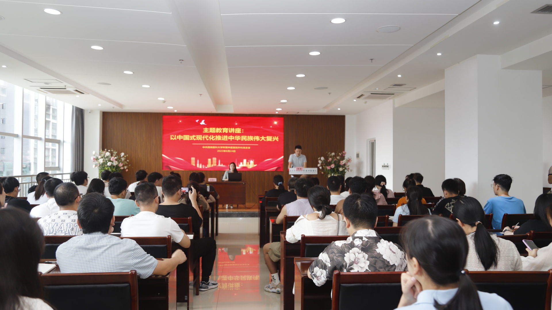 2023年8月24日,我院外科党总支开展了主题教育讲座,会议邀请了西南医科大学马克思主义学院教学一部主任彭鎏佳副教授授课,25个党支部70余人参加了会议。会议由外科党总支书记张磊主持。张磊主持彭鎏佳做专题讲座会上...