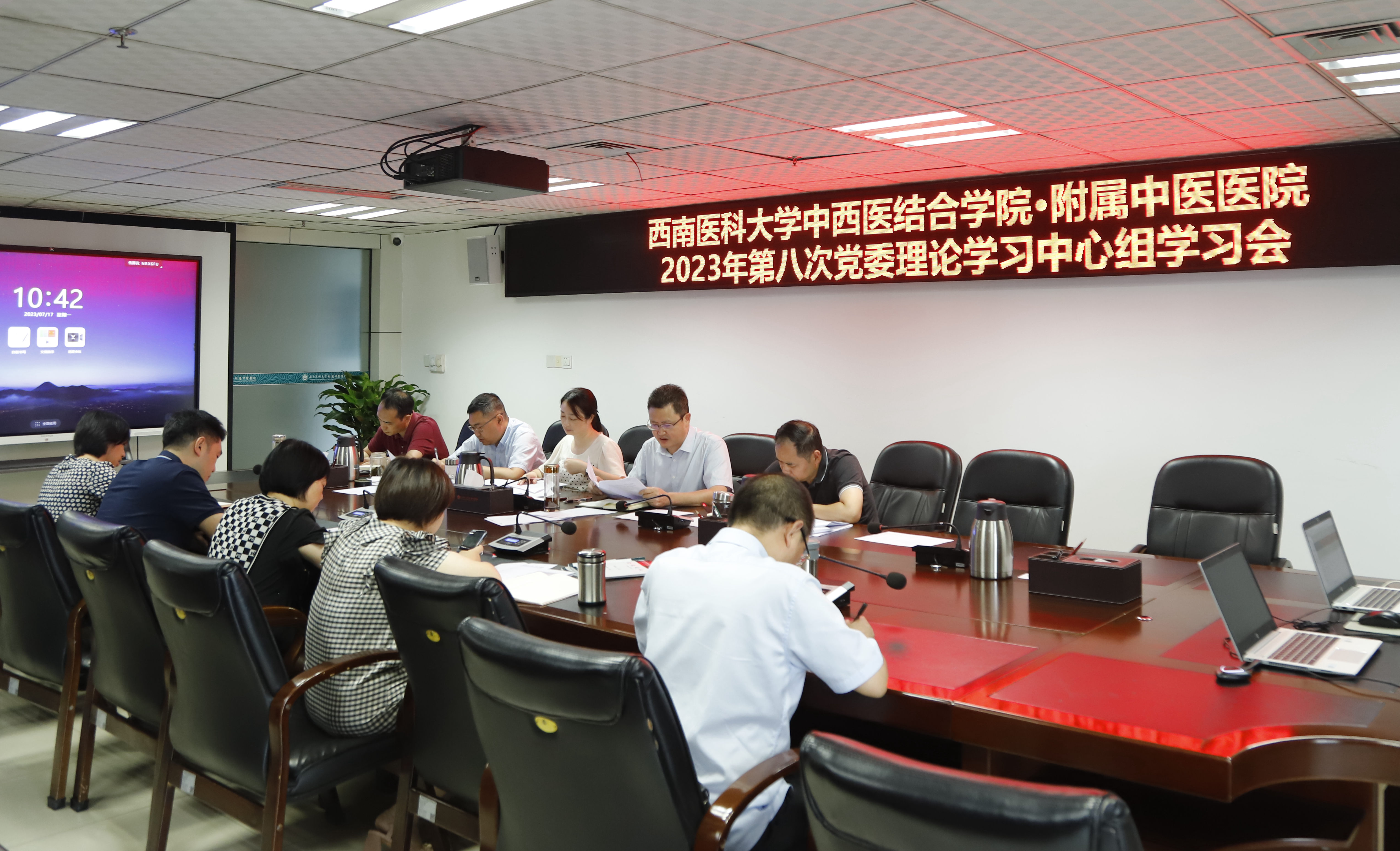 2023年7月10日,医院党委在岐黄厅召开了2023年第8次党委理论学习中心组学习会,全体党委理论学习中心组成员参加了会议,会议由党委书记李志主持。会前,全体人员自学了《健全全面从严治党体系 推动新时代党的建设新的...