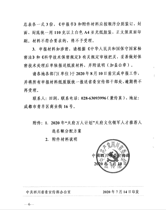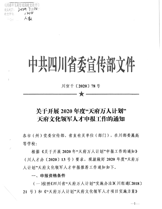 下一条:关于开展2020年“天府万人计划”天府创新领军人才等3个项目申报工作的通知