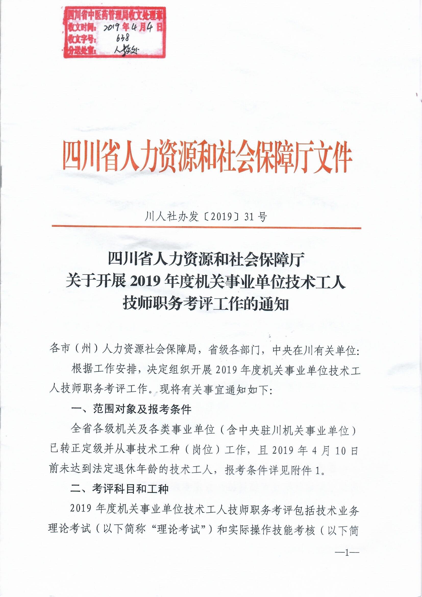 附件下载:四川省人力资源和社会保障厅关于开展2019年度机关事业单位技术工人技师职务考评工作的通知