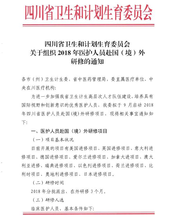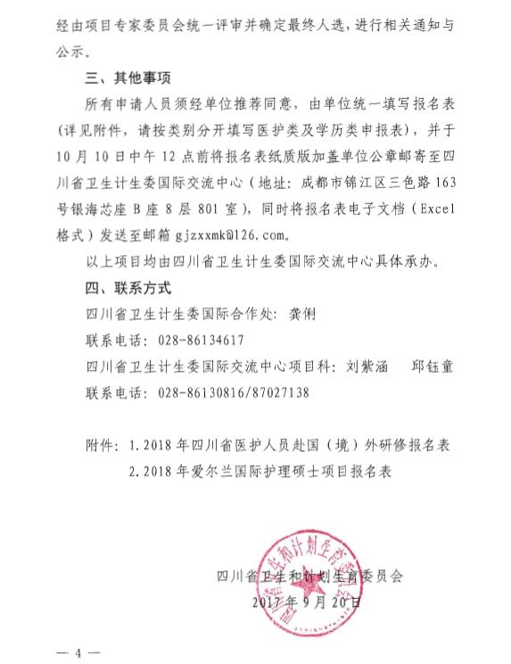 附件1:2018年四川省医护人员赴国(境)外研修报名表附件2:2018年爱尔兰国际护理硕士项目报名表