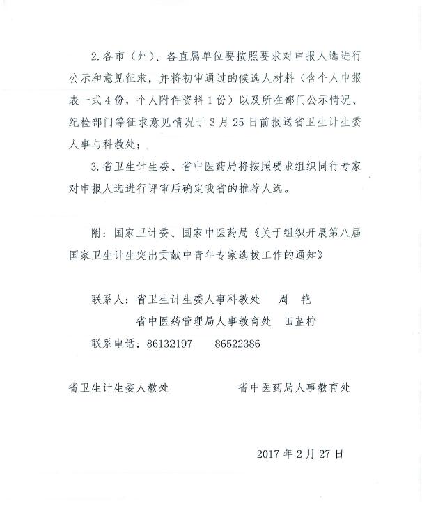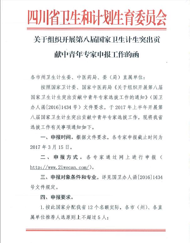 附件:关于组织开展第八届国家卫生计生突出贡献中青年专家选拔工作的通知