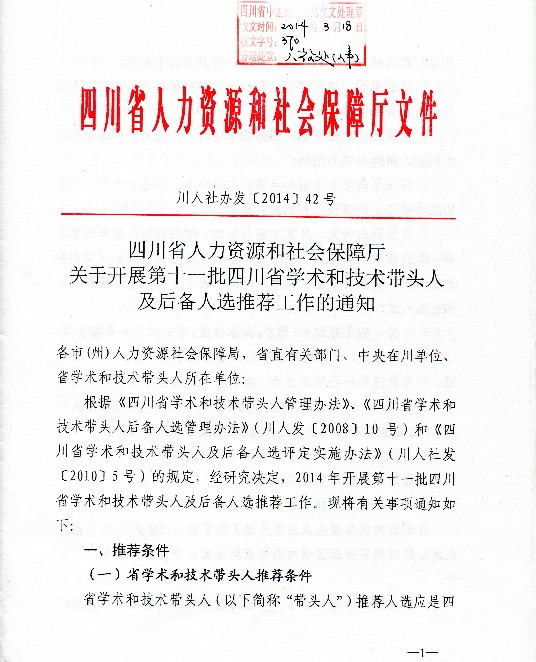 上一条:四川省人力资源和社会保障厅关于开展第十二批四川省有突出贡献的优秀专家选拔工作的通知
