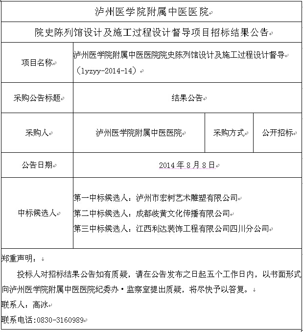 院史陈列馆设计及施工过程设计督导项目招标结果公告