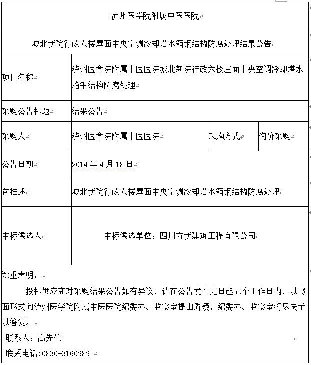 下一条:城北新院行政城北住院大楼屋面广告牌钢结构防腐处理结果公告