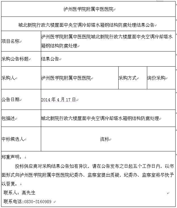 上一条:城北新院行政城北住院大楼屋面广告牌钢结构防腐处理结果公告