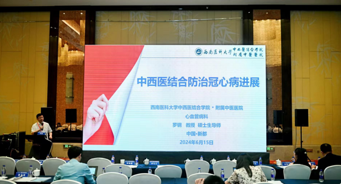 2024年6月15日,第21届中国国际血管医学大会暨第19届亚太国际血管健康与衰老会议在成都召开,我院心血管内科副主任罗钢受邀参会,并作了《中西医结合防治冠心病进展》专题讲座。