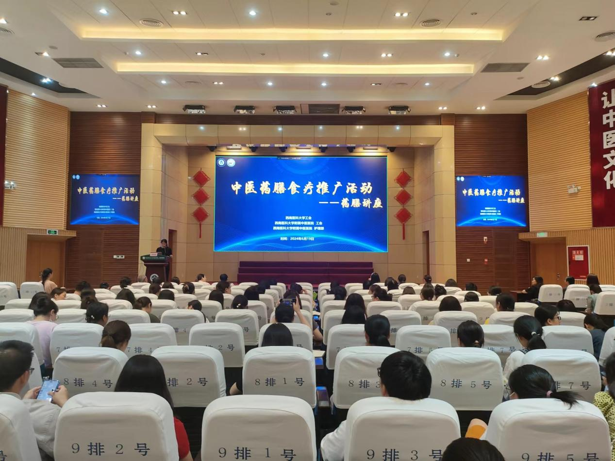 2024年6月19日,我院工会联合护理部举办中医药膳专题讲座,邀请了内科庄诚教授作了题为《药膳养生》专题讲座,中医护理小组成员、外科党总支等200余人参加了讲座。