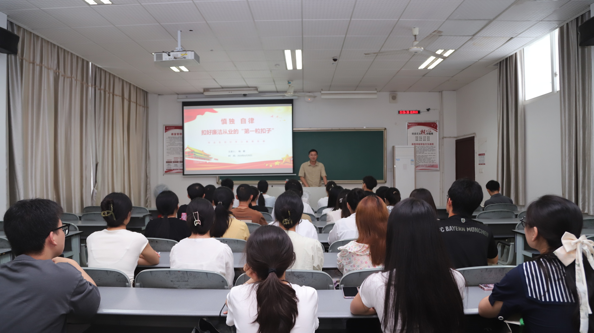 本次毕业生廉洁教育主题班会的召开,旨在教育引导毕业生植廉于心、养廉于常、践廉于行,进一步加强思想政治建设,强化毕业生廉洁自律意识,廉洁从业,引导学生扣好毕业从业的“第一粒扣子”。