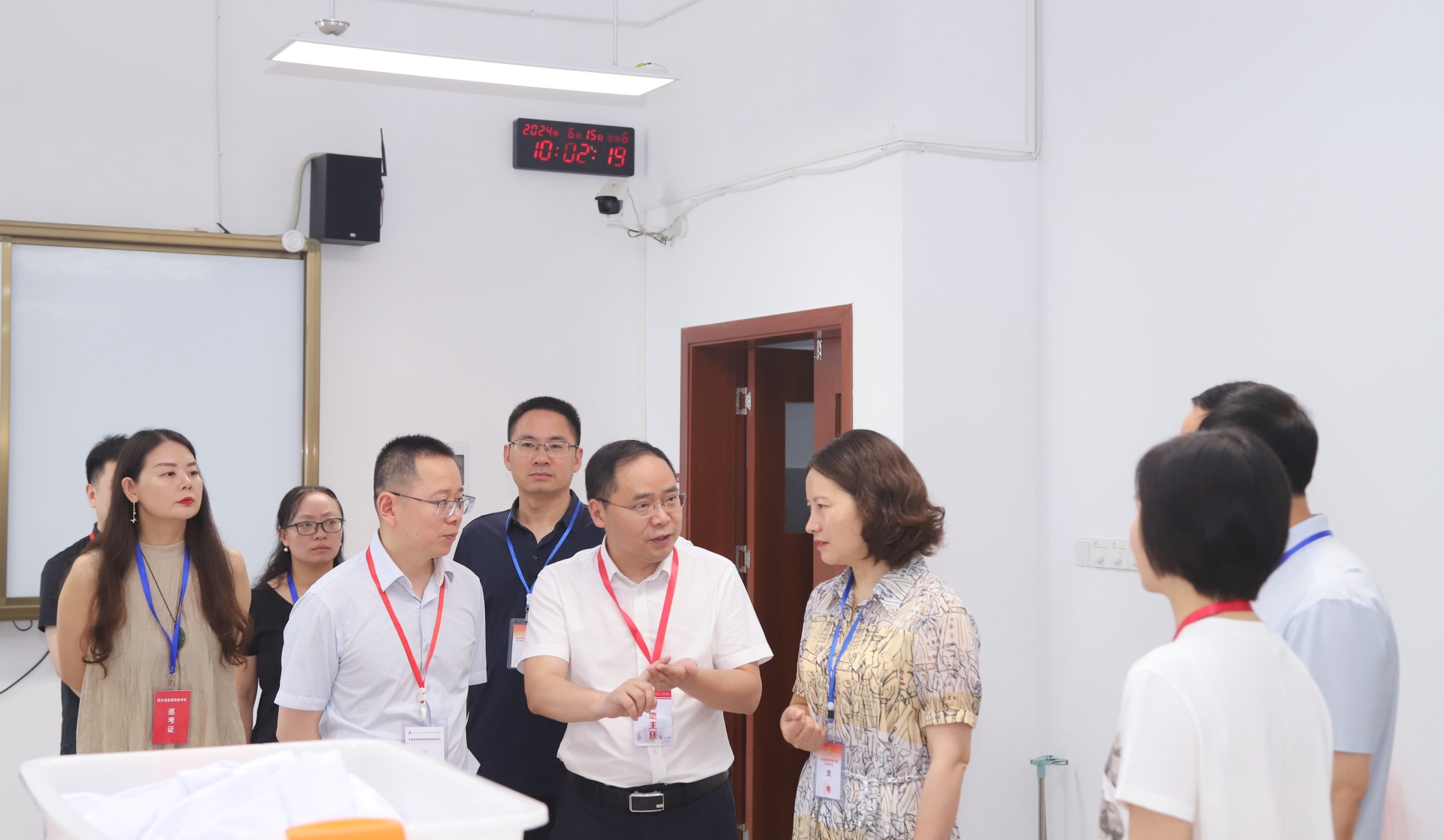 考试期间,泸州市卫生健康委党组书记、主任、市中医药管理局局长曾妍,市卫生健康委党组成员、副主任龙维平,市疾病预防控制局局长、市卫生健康委副主任赵秋,市医疗卫生服务指导中心、市卫生考试中心主任王邦富,西南医科大学副校长何涛,我院院长刘建等到现场进行了督导检查,对基地的考试组织工作给予了肯定。