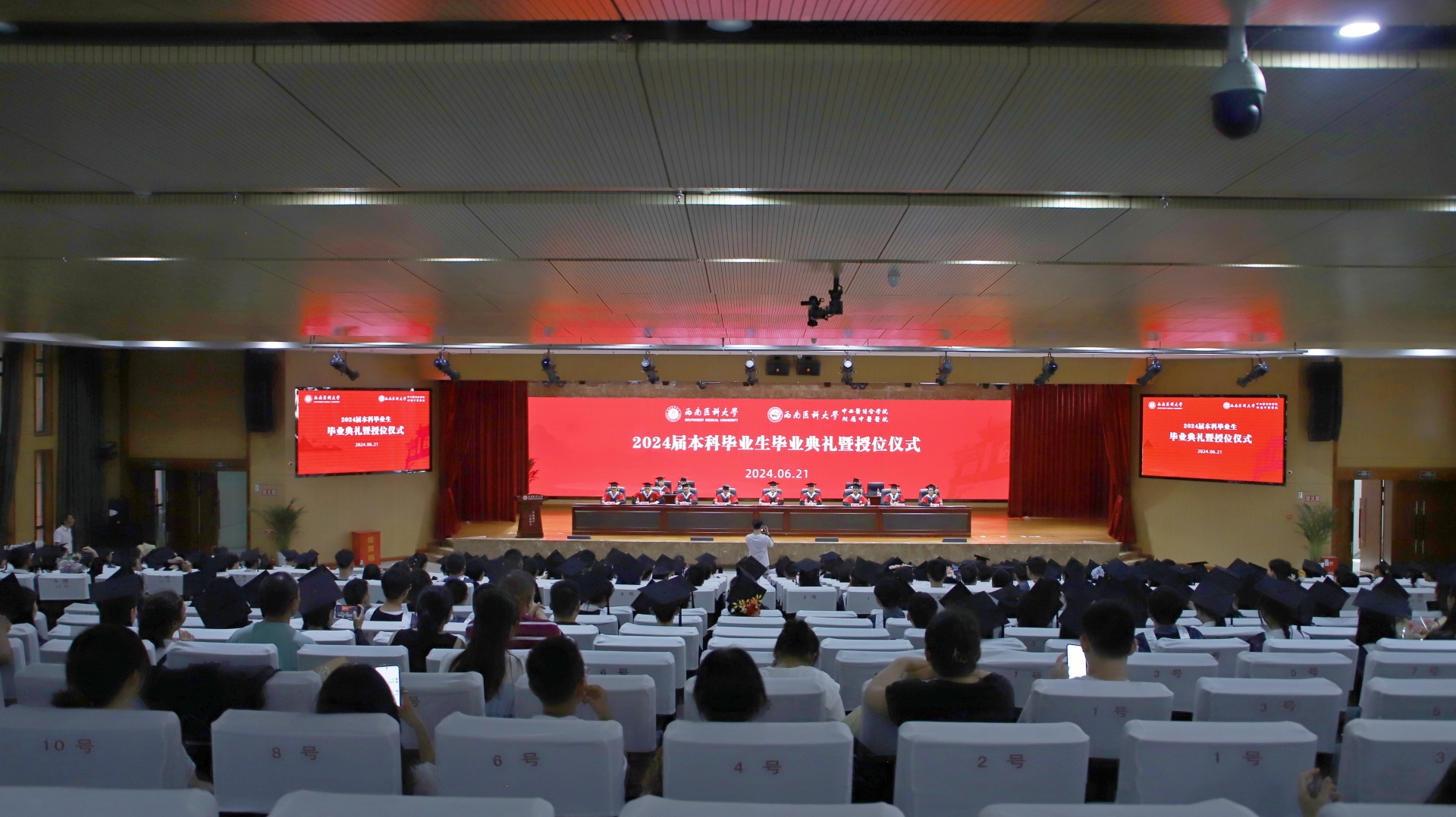 2024年6月21日,西南医科大学中西医结合学院2024届学生毕业典礼暨授位仪式在城北校区第一学术报告厅举行,学院党委书记李志、院长刘建等全体院领导,全体学位评定分委会委员,教师代表及2024届全体毕业生参加了毕业典礼。毕业典礼由学院党委副书记雷学举主持。