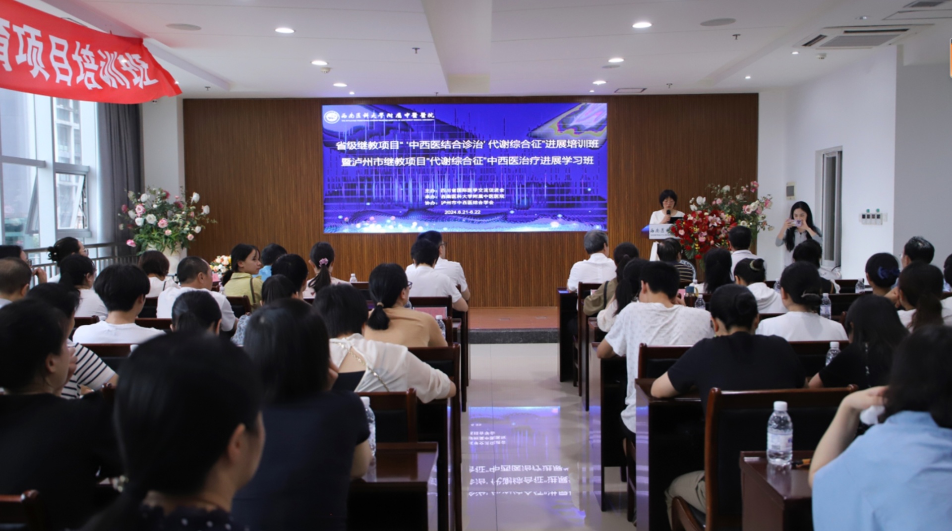 2024年6月21-22日,我院举办泸州市中西医结合内分泌代谢病专委会第一届第三次委员会议暨省级继教项目“中西医结合诊治‘代谢综合征’进展培训班 ”、泸州市继教项目“‘代谢综合征’中西医治疗进展学习班”,我院副院长张磊、相关授课专家、泸州市中西医结合学会内分泌代谢病专业委员会委员以及来自省内内分泌代谢疾病专业医护人员等100余人参加了会议。开幕式由泸州市中西医结合学会内分泌代谢病专委会主任委员、我院内分泌代谢科主任赵长英教授主持。