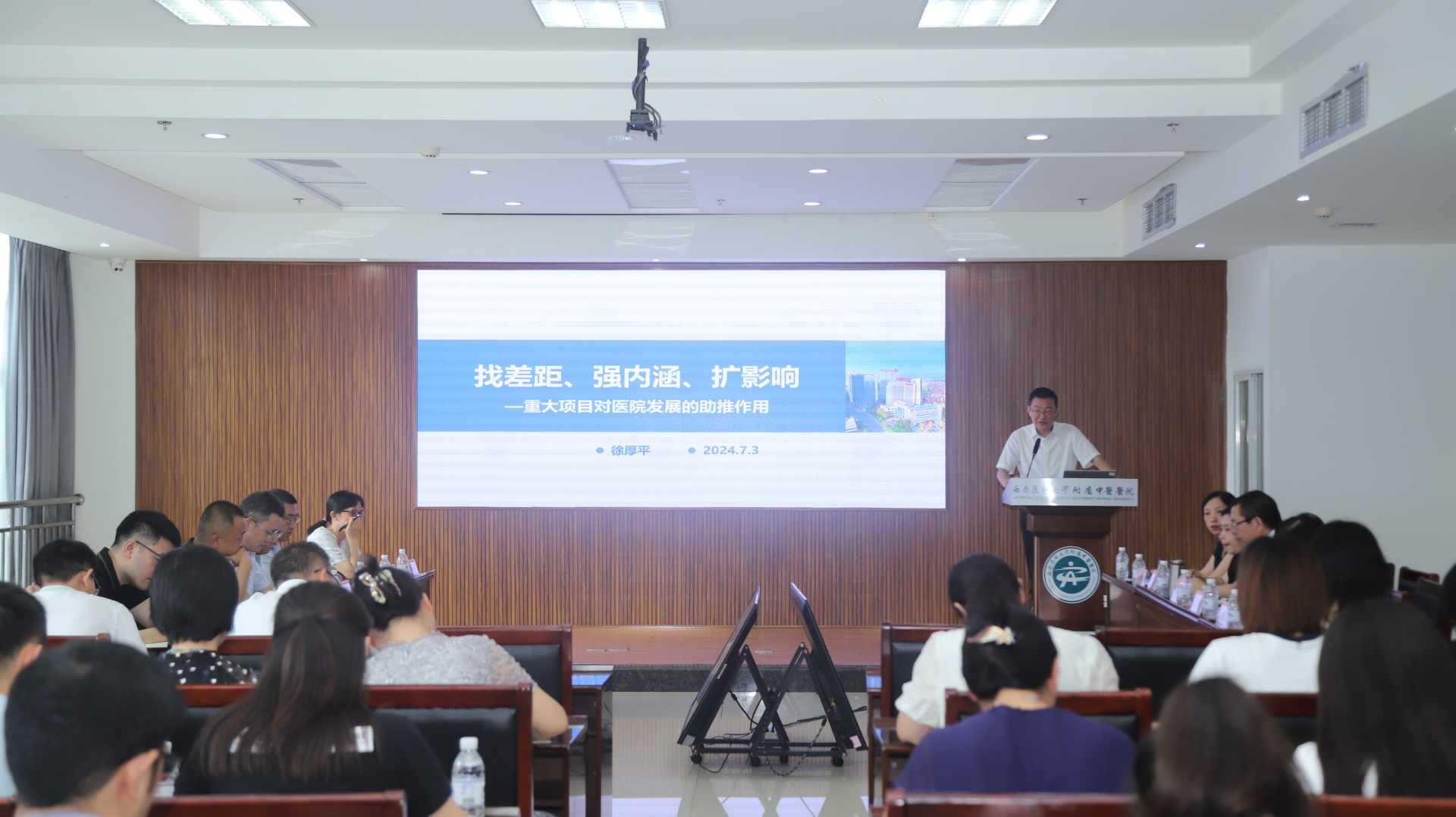 会上,财务管理部副部长(主持工作)甘陈芳以《以提升服务为核心 全面推进财务管理创新》为题作管理专题分享;副院长徐厚平以《找差距、强内涵、扩影响—重大项目对医院发展的助推作用》以为题作了专题讲座;院办主任易露通报了近期院值班、职能部门满意度工作及安全工作等情况;党办主任汪建英通报了科级干部对口联系工作情况及2024年上半年目标督查工作等。