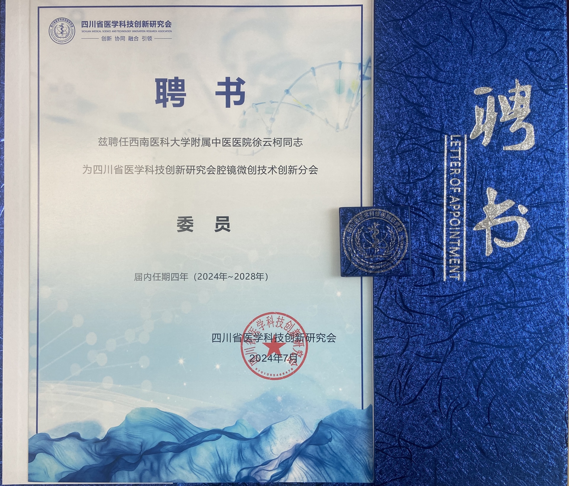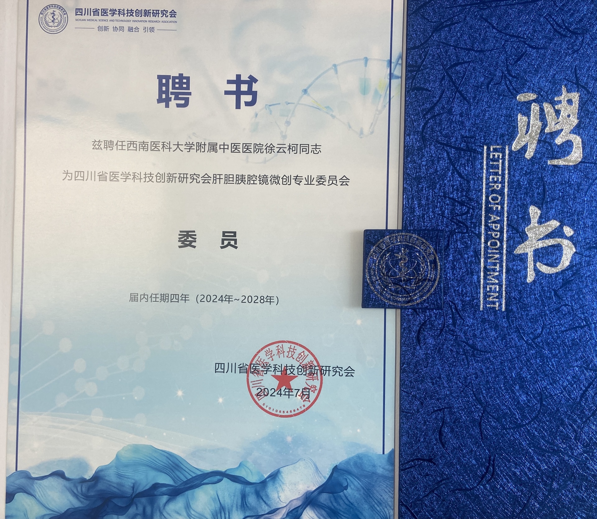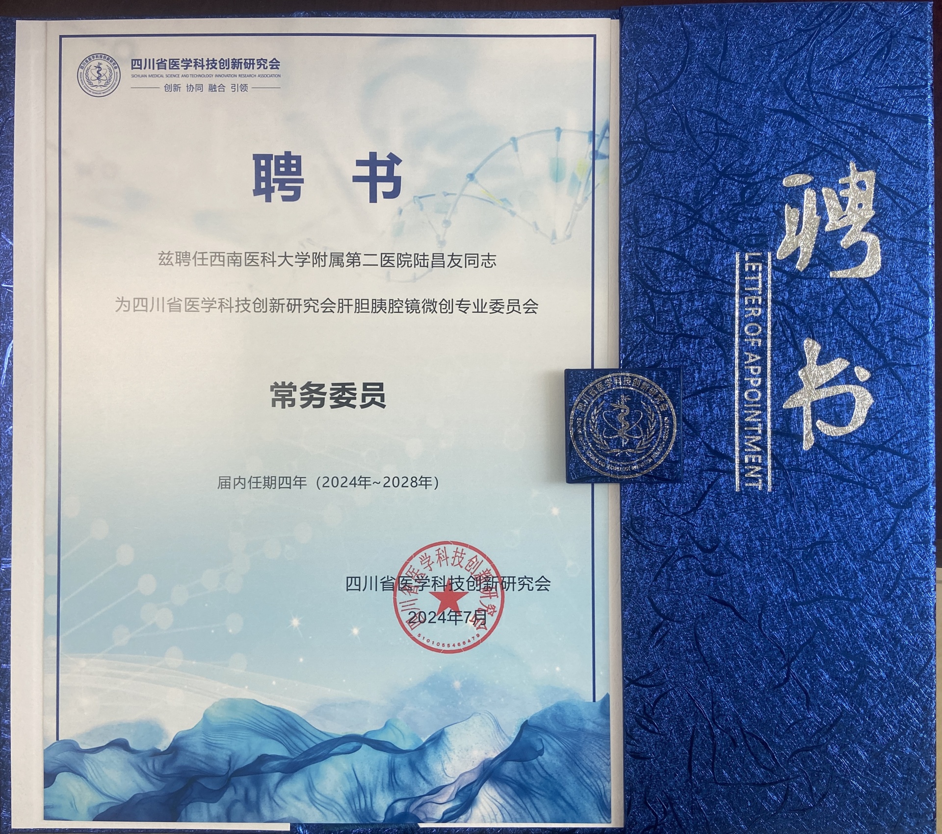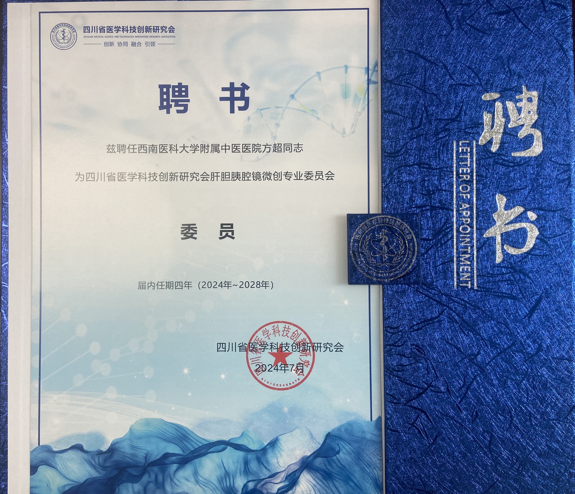 2024年7月5-6日,四川省医学科技创新研究会“腔镜微创技术创新分会”和“肝胆胰腔镜微创专业委员会”成立大会在成都召开,我院肝胆胰外科主任陆昌友教授应邀参会并当选为两专业委员会常务委员,方超主治医师、徐云柯主治医师当选为两专业委员会委员。