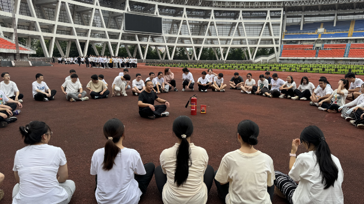 另外,7月10日,保卫工作部在西南医科大学奥体中心主体育馆对2024年新员工和规培医护学员进行了军训,军训过程中为全体人员讲解了消防安全和人身安全等知识与技能。