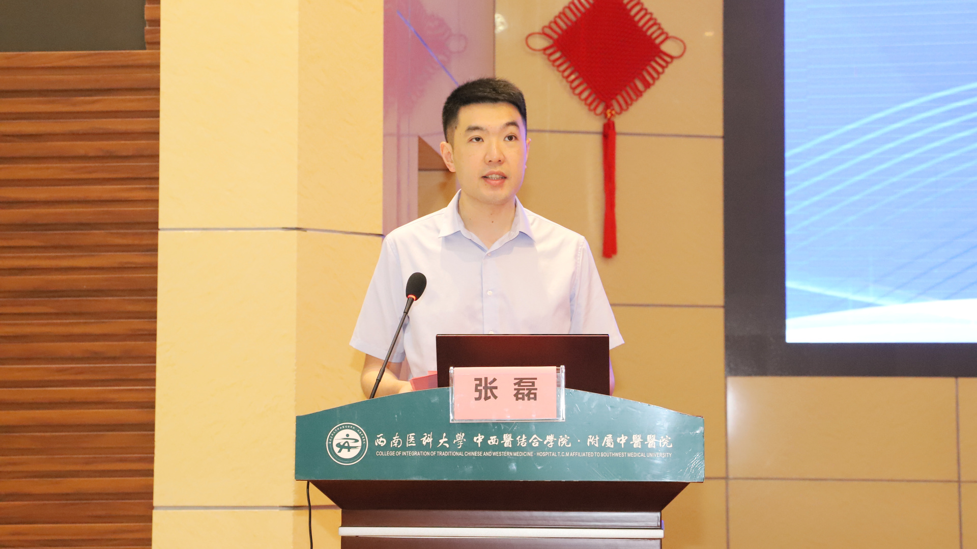 张磊致辞,他介绍了我院基本情况、药学学科建设和专科发展情况以及区域中医药院内制剂研究转化中心建设现状,希望与会人员以此次会议为契机,进一步搭建交流平台,进一步加强沟通联系,进一步分享学术成果,共同提升中药制剂研发及中药合理使用水平,为保障人民群众生命安全和身体健康贡献中医力量,为四川省中医药综合改革示范区和中医药强省建设作出积极贡献。