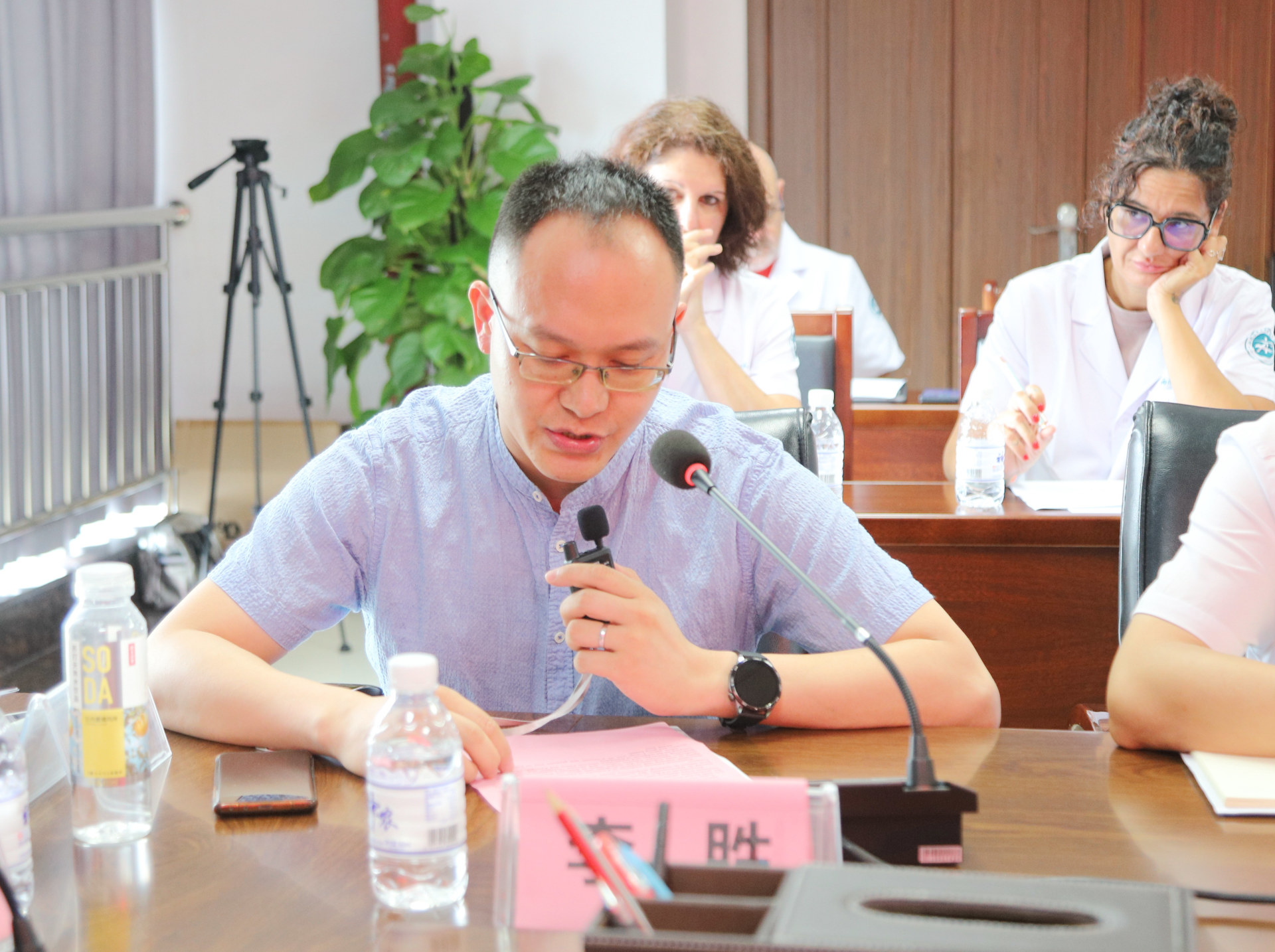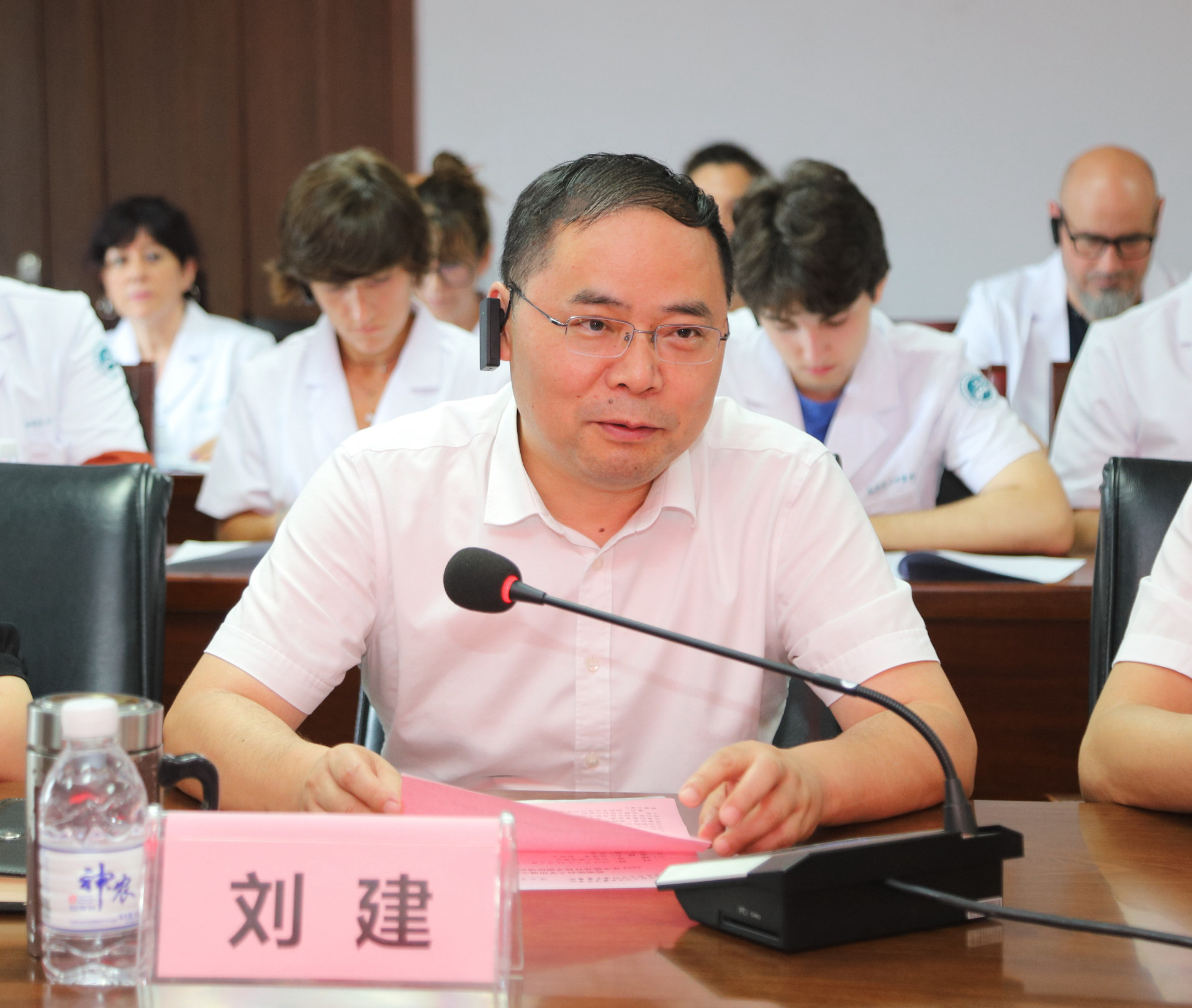 刘建讲话,他介绍了我院基本情况及与葡萄牙医道针灸中医中心前期的合作交流情况,并对来自葡萄牙、西班牙的13名学生表示欢迎。他指出,医院高度重视本次培训,将充分利用好医院优质师资力量和丰富的教育资源,全力做好此次培训班的教学工作,让大家在学习中医的同时感受到中国传统文化和中医药文化的魅力,进一步学好中医、了解中医、运用中医。