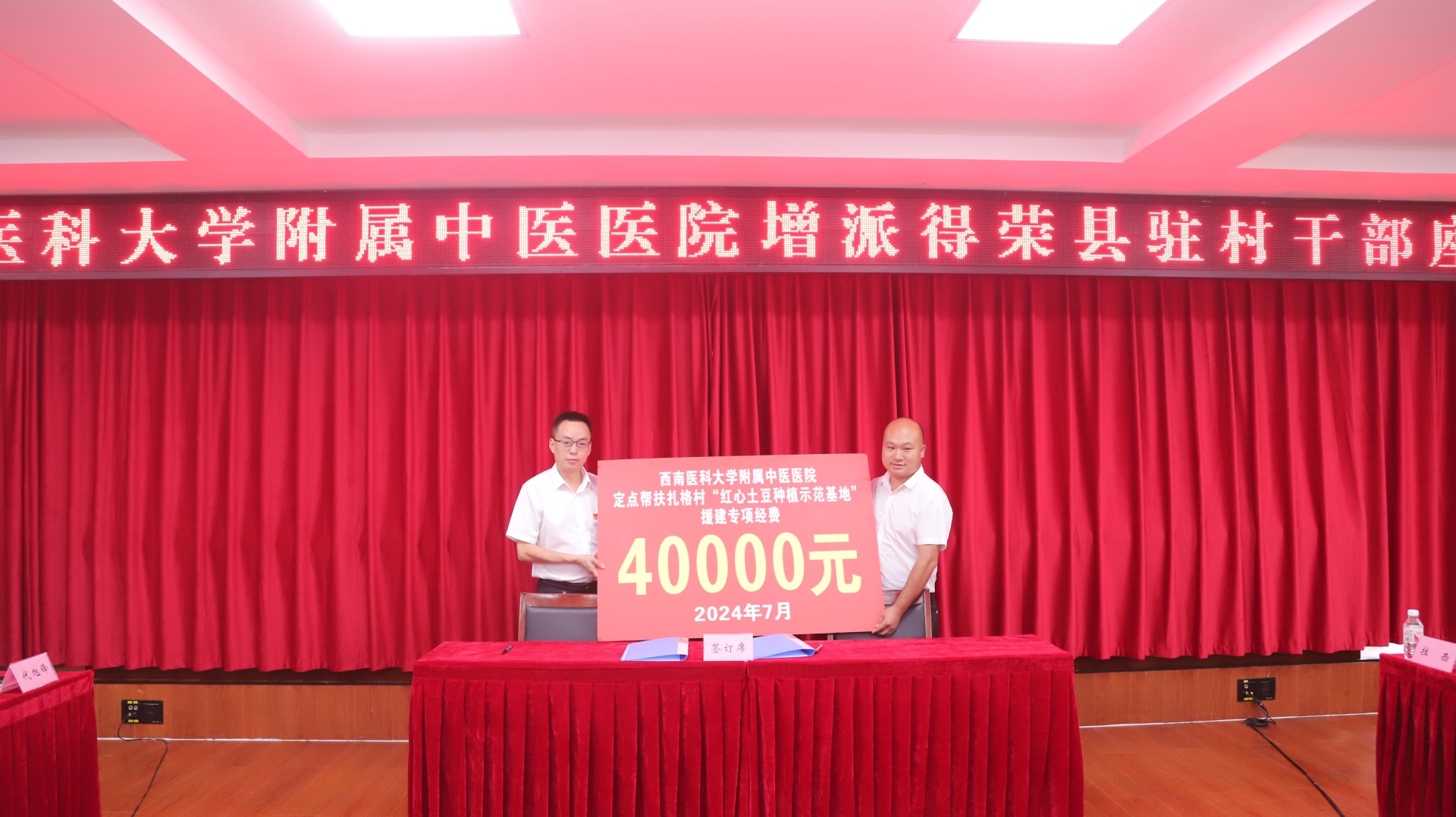雷学举代表医院与得荣县太阳谷镇扎格村签订了乡村振兴“红心土豆种植示范基地”捐赠协议。