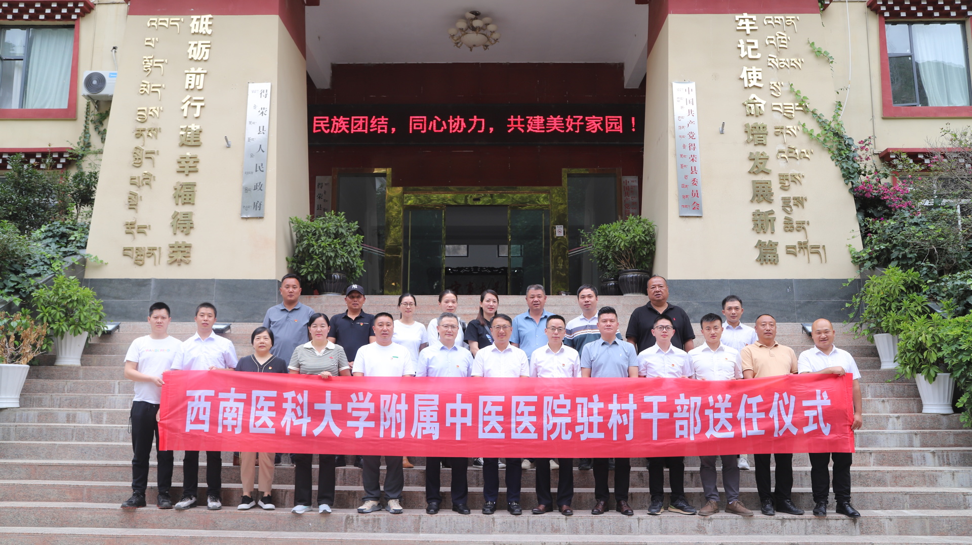 李志讲话,他代表医院对得荣县委县政府一直以来的关心和信任表示感谢,并对医院驻村干部的工作给予了充分肯定。他表示医院高度重视乡村振兴定点帮扶工作,他要求新增派的驻村干部要加强学习,务实开展工作,认真学习乡村振兴工作内容,尽快熟悉村情、民情;要树好形象,发扬优良作风,严格遵守相关要求,实事求是,主动作为,充分发挥党员和驻村干部的带头作用,积极推动乡村振兴工作;要团结上下,共同努力奋斗,创新思维,聚集各方积极力量扎实推进乡村振兴工作,进一步提升村民的幸福感、获得感和安全感。