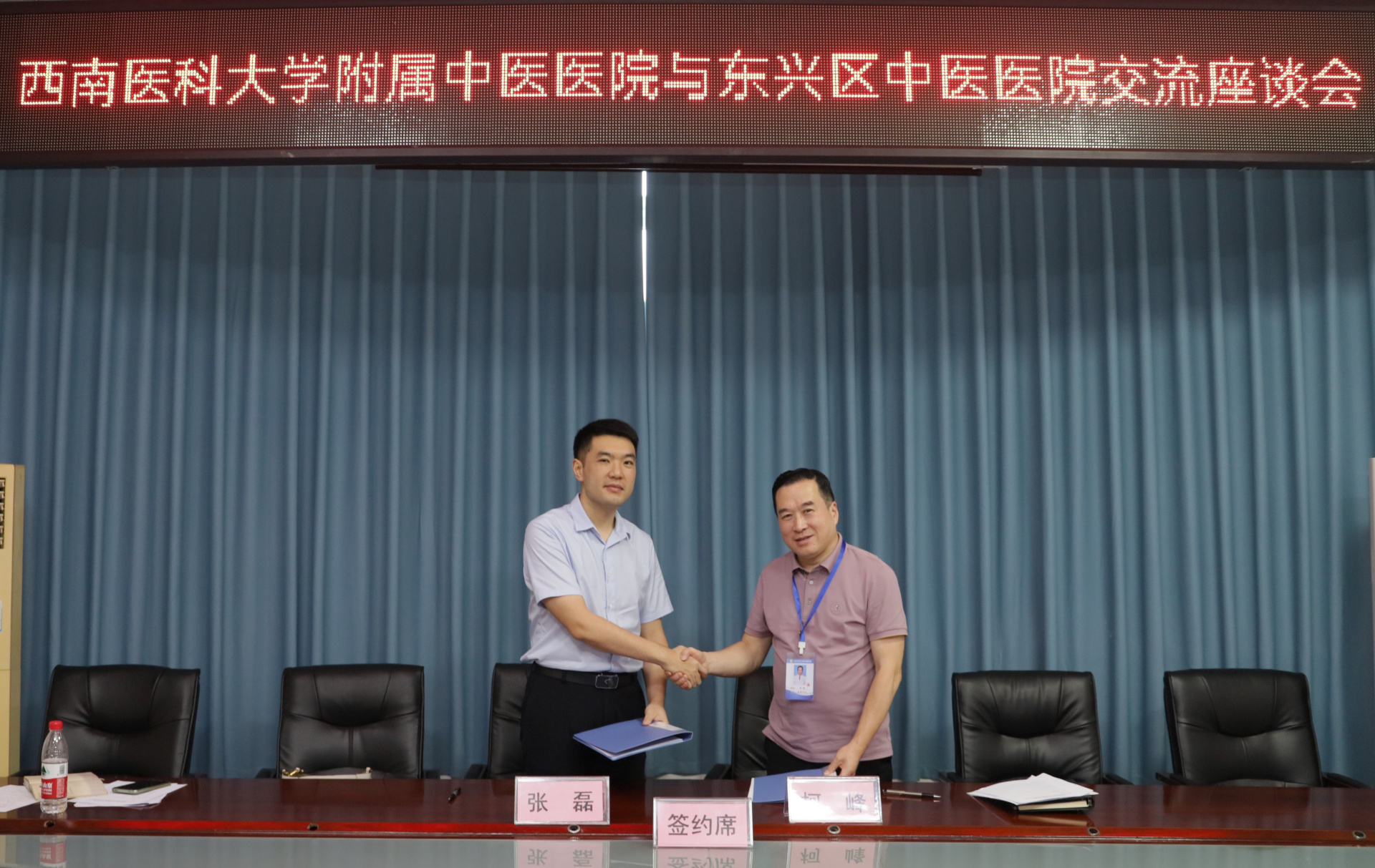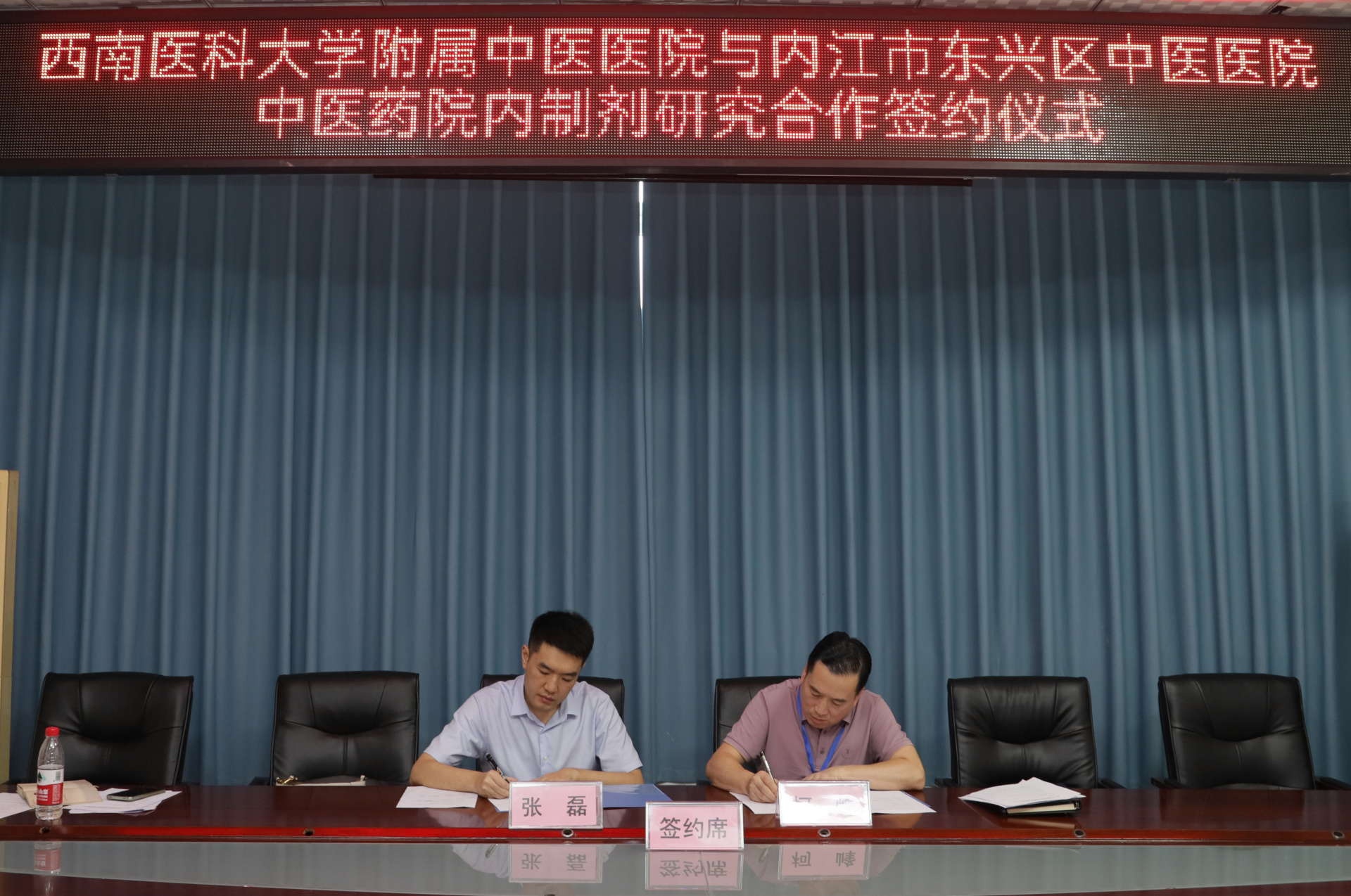 张磊讲话。他对内江市东兴区中医医院近年来取得的成绩表示祝贺,并重点介绍了我院区域中医药院内制剂研究转化中心及医疗集团建设的基本情况。他希望双方能在此次合作的基础上,进一步深化院内制剂研究与调剂合作,并在人才培养及科研合作方面优势互补,不断提升双方医院的医疗服务能力和水平,为人民群众提供更加优质的中医药健康服务。