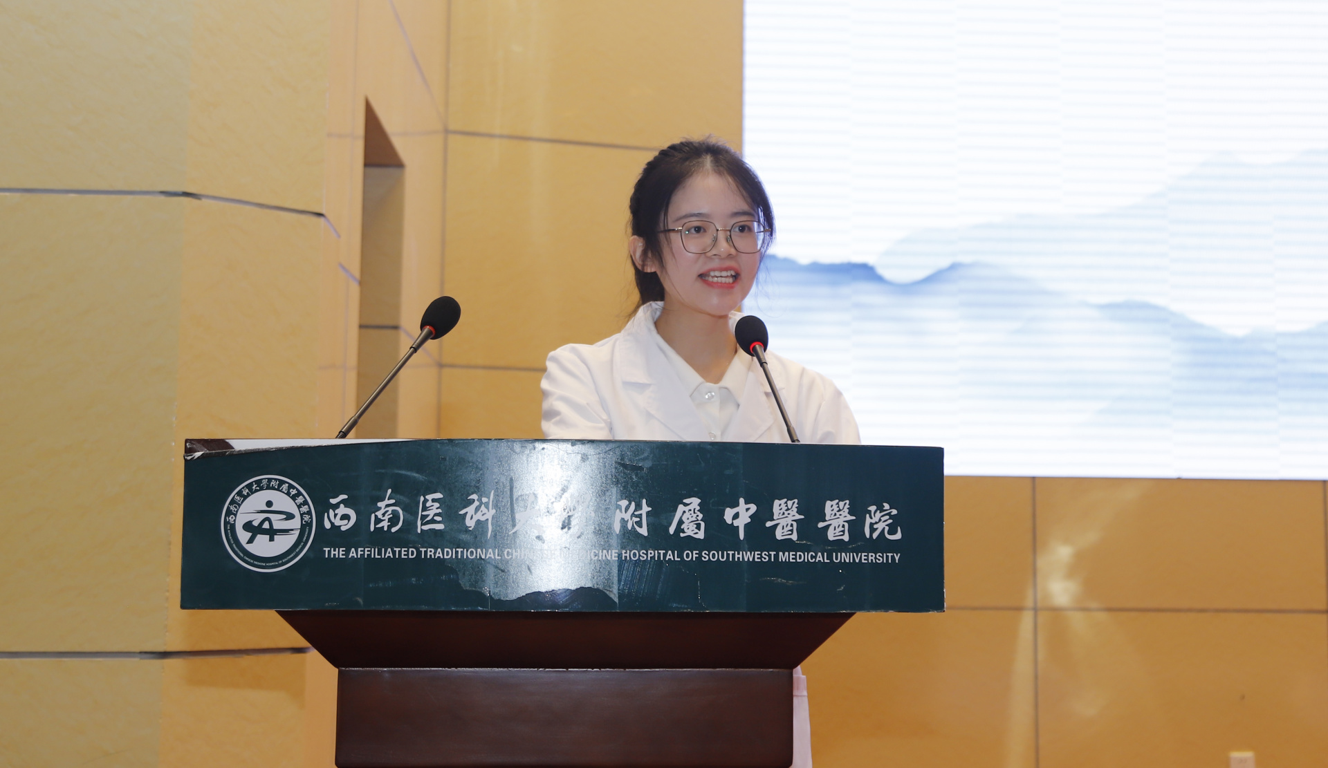 学生代表李雪情发言,她表示在未来三年的跟师学习中,要如饥似渴主动学习,勤于思考深入学习,学以致用务实学习,争做中医经典的“传承人”,医学路上的“早行人”,患者健康的“守护人”。