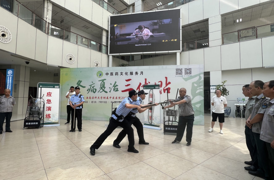 2024年8月6日,我院在城北门诊中庭开展了“2024年保安防暴培训暨应急演练”,保卫部共计60余人参加了此次培训演练。