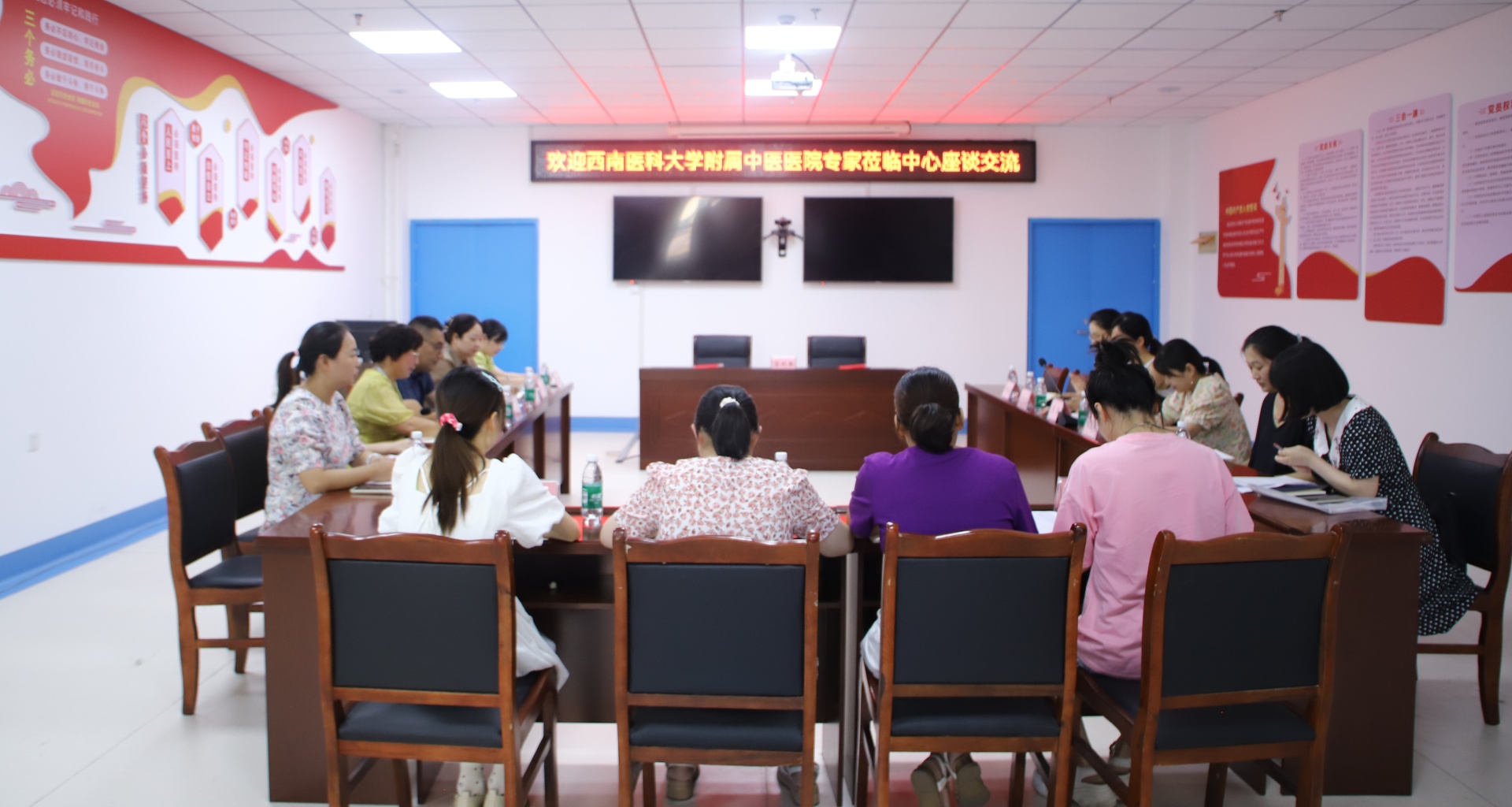 2024年8月21日,我院副院长董丽带领相关职能部门及临床科室人员到龙马潭区安宁街道社区卫生服务中心走访交流。龙马潭区卫生健康局副局长林刚、中医股股长汪霞,龙马潭区安宁街道社区卫生服务中心党支部书记、主任刘兴莲等领导班子成员及相关人员参加了会议。会议由刘兴莲主持。
