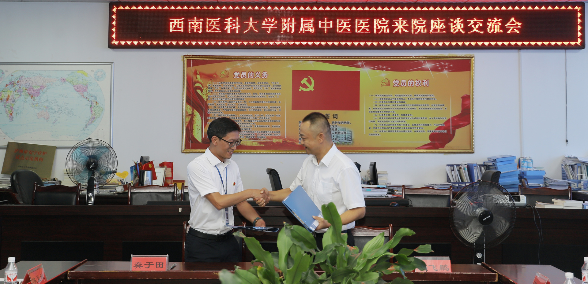 2024年9月3日,我院党委副书记、纪委书记鄢飞鹏带领相关职能部门及临床科室人员到江阳区黄舣中心卫生院(江阳区第二中医医院)交流,黄舣中心卫生院副院长龚于田等领导班子成员及相关部门人员参加了会议。会议由龚于田主持。