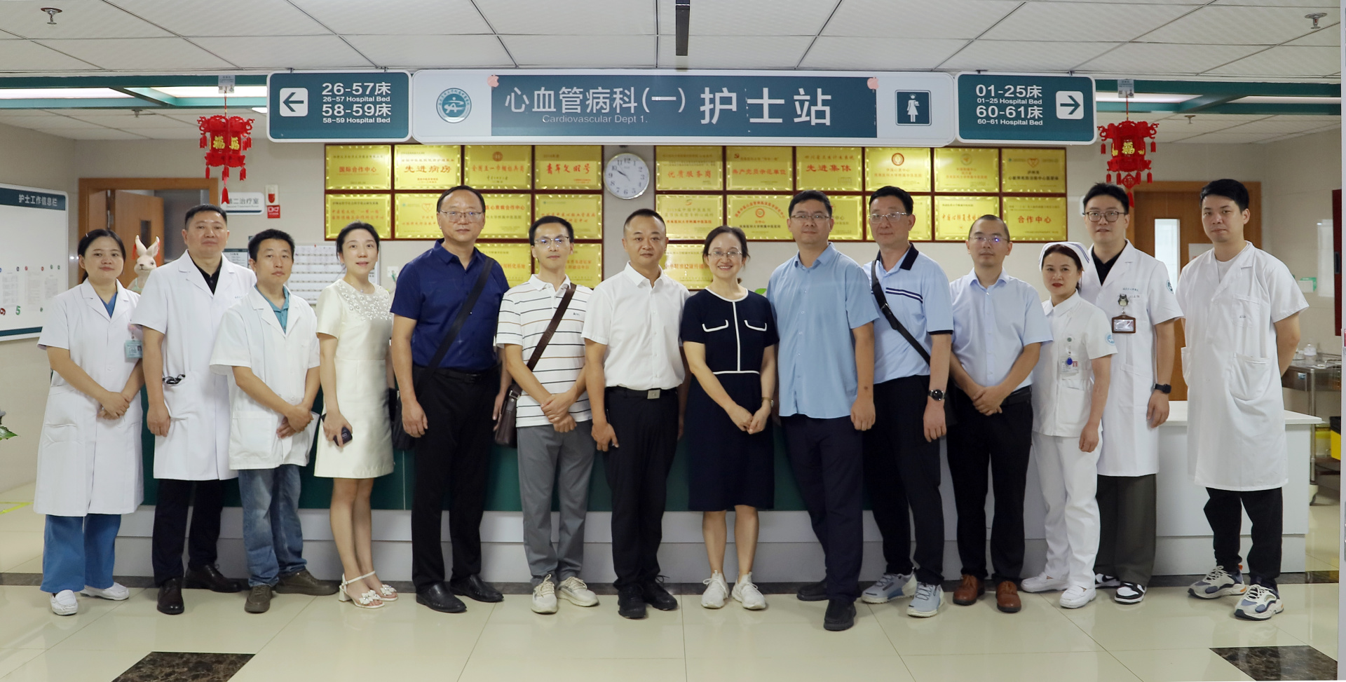 会前,来宾们在我院党委副书记、纪委书记鄢飞鹏等陪同下参观了治未病中心、门诊、中医特色诊疗中心、中西医结合研究中心、心血管内科病区、心脏神经重症监护室、心血管疾病介入诊疗中心等地。