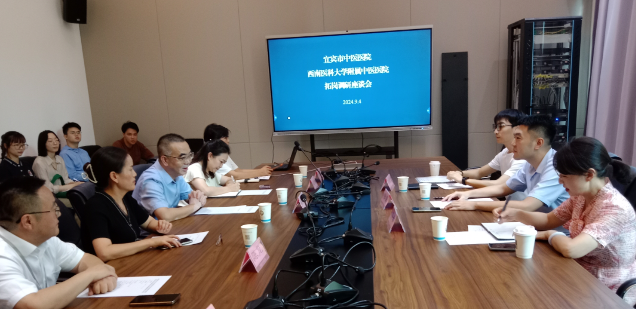 2024年9月4日,我院副院长张磊带领学科建设办公室人员及中西医结合学院硕士研究生到宜宾市中医医院开展“访企拓岗”调研活动。宜宾市中医医院院长徐永强,副院长冯雯琪,副院长陈晓英及相关人员参加了本次活动。双方就医院建设、人才培养等方面进行了交流座谈。