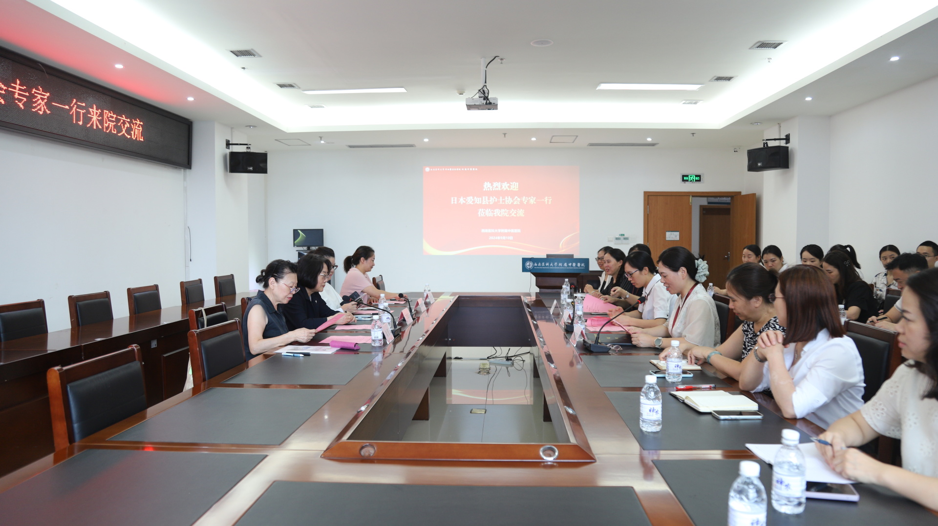 2024年9月10日,日本爱知县护士协会会长三浦昌子,护士协会护理环境研究专家武泽惠理子,四川省国际科技合作协会顾问、翻译顾问梁晋等来院交流,我院副院长董丽,护理部工作人员及各大科护士长等参加了座谈会。