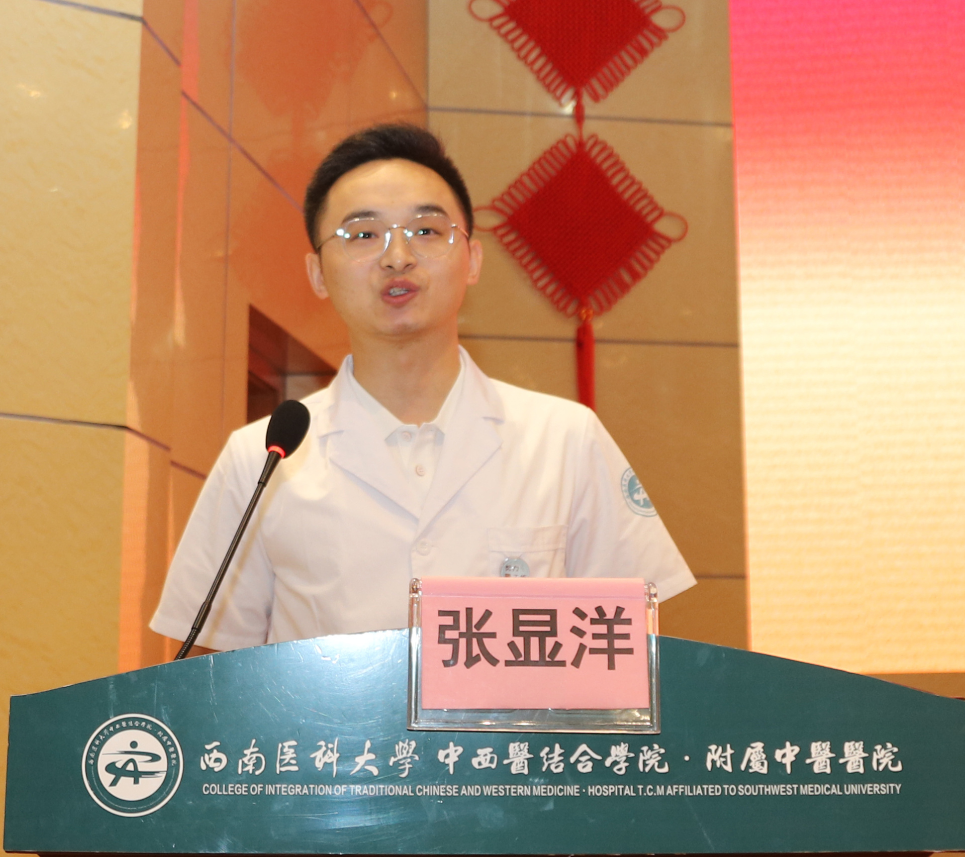 学员代表张显洋发言。他号召各位学员在未来三年的跟师学习中,珍惜跟师学习机会,务实学习,学以致用,不断提高自我。
