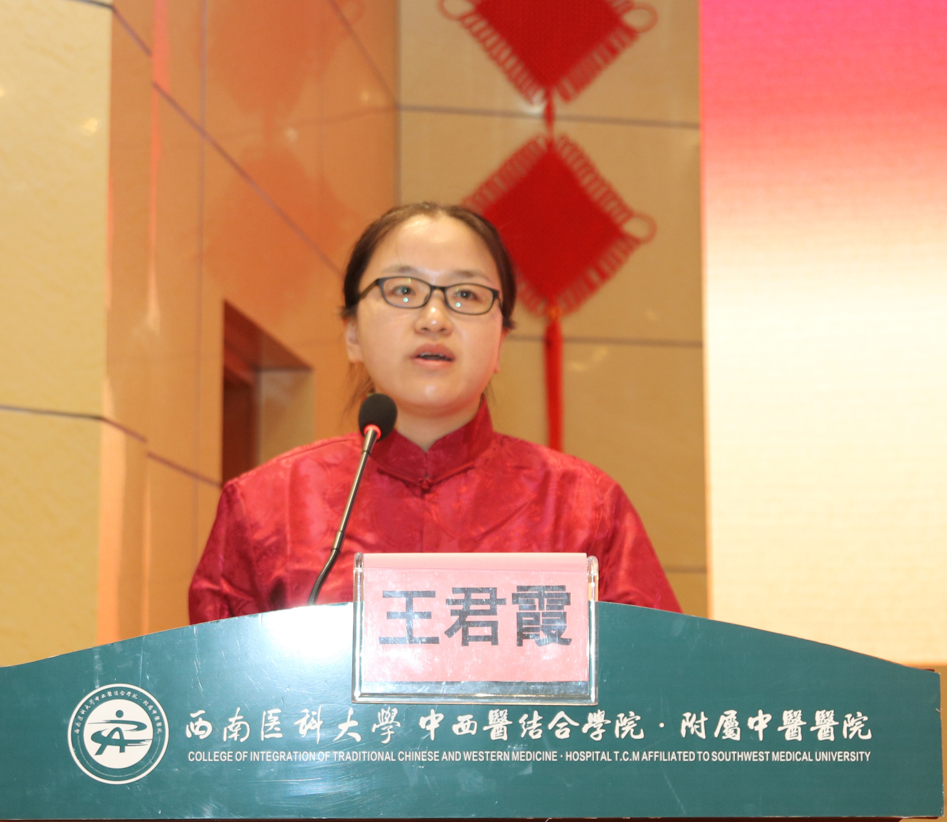 师承指导老师代表王君霞发言。她表示作为中医传承教育的受益者,今天也成为了师承指导老师,将肩负着培养下一代的重任,以自己的学识、经验和热情,毫无保留地传授给学员,同时她建议学员们一定要树立理想、追求卓越,勤奋钻研、博采众长,严于律己、持之以恒。