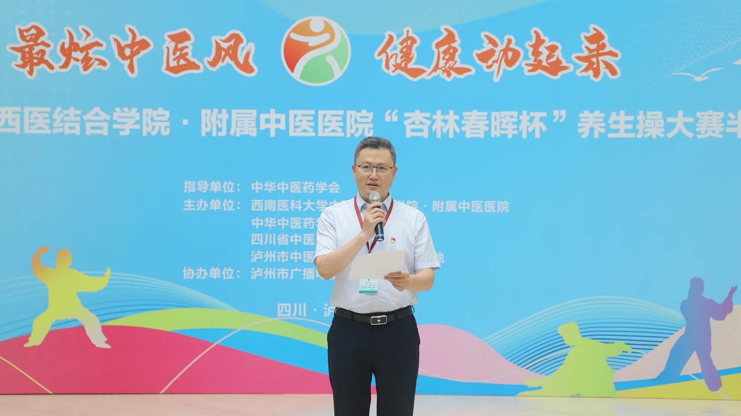 李志致辞,他介绍了医院的基本情况及党建工作品牌——春晖医生蒲公英行动·中医药健康服务站情况,并表示,医院启动“杏林春晖杯”养生操大赛,是推进“春晖医生蒲公英行动”的扎实举措,也是服务社区群众健康的创新行动。他希望,社区群众在陶怡情操中,享受乐趣;在你追我赶中,赛出水平;在互学互帮中,结交友谊,一起为促进养生理念融入广大群众的日常生活、让中医养生操成为社会新风尚同心同力,助推泸州国家区域医药健康中心和中医药强市建设,为中医药事业传承创新发展和健康中国建设贡献积极力量。