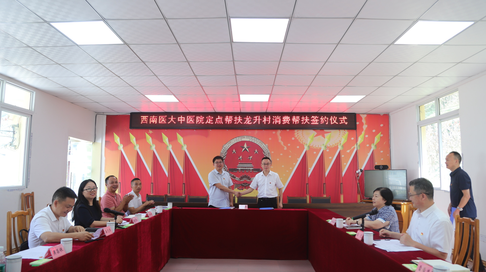 会上,我院驻龙升村第一书记冯跃平汇报了驻村帮扶工作情况;雷学举代表医院与龙升村签订了稻鱼大米购销协议;李志代表医院向龙升村捐赠了“巩固村五有”专项资金。
