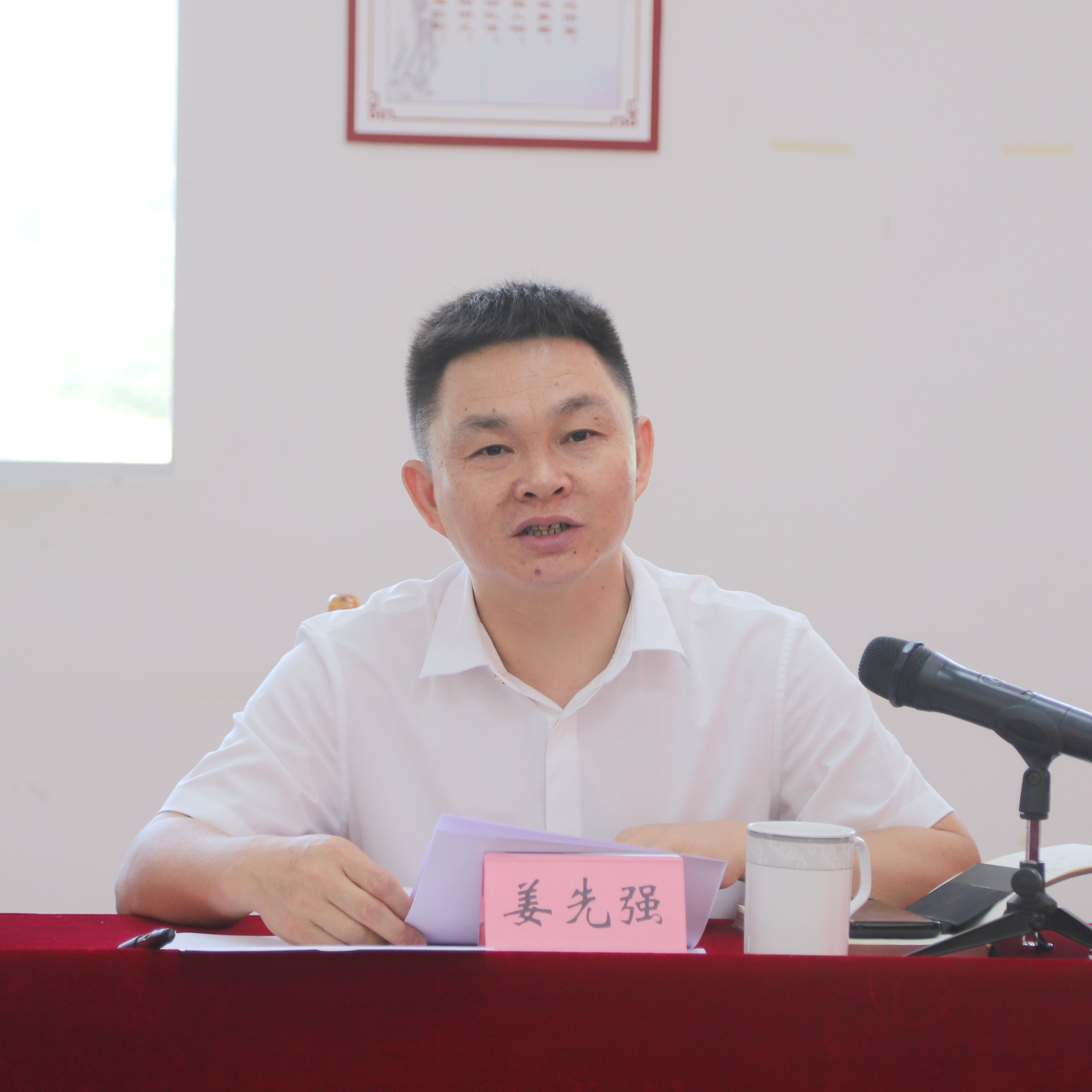 姜先强讲话,他介绍了双沙镇基本情况和乡村振兴工作相关情况,希望双方加强交流联系,拓展发展思路,抓好产业发展,推进乡村振兴不断取得新成效。