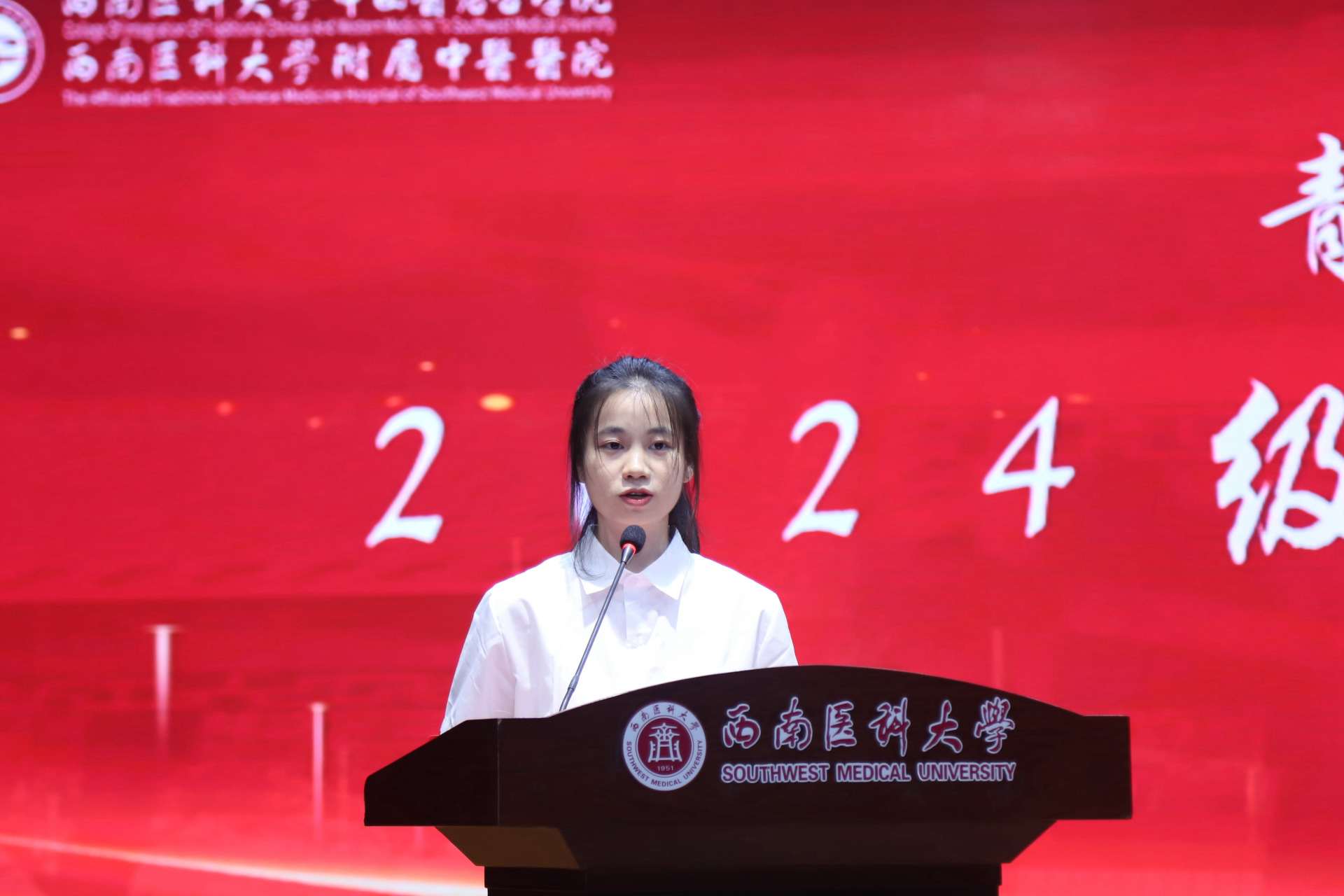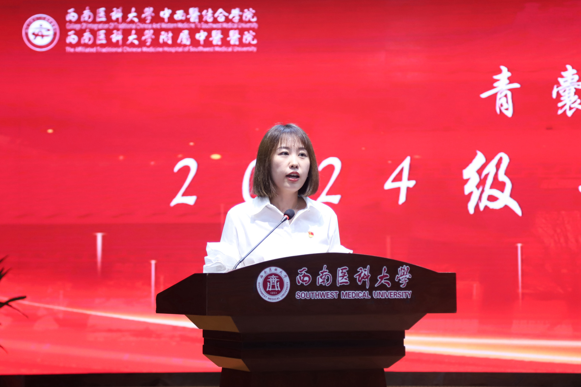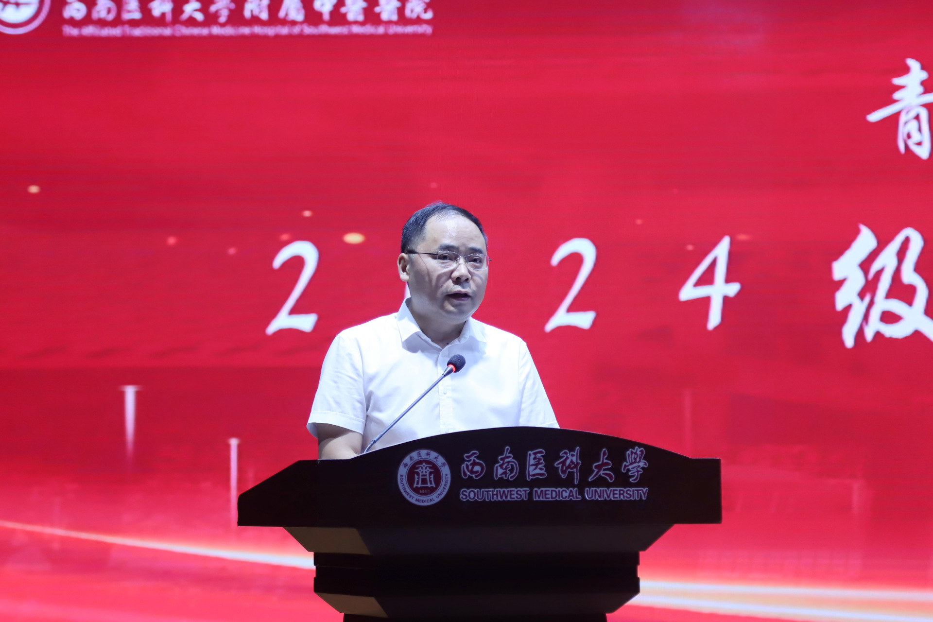 会上,院长刘建致辞。他对627名新同学的到来表示欢迎,并简要介绍了中西医结合学院的办学特色和基本情况。他希望2024级同学们要扛起责任、勇于担当,以青春之名,彰显强国有我的志气;以热爱之名,点亮大医精诚的梦想;以时间之名,遇见光芒万丈的自己。