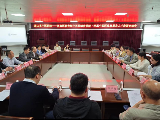 2024年10月9日,我院副院长张磊带领学科建设办公室人员及中西医结合学院硕士研究生到乐山市中医医院、屏山县中医医院开展“访企拓岗”调研活动。乐山市中医医院党委副书记聂嘉、副院长高林,屏山县中医医院党总支书记姜伟、院长李基强及相关职能部门负责人参加本次活动。双方就医院建设、人才政策及岗位需求等进行了交流座谈。