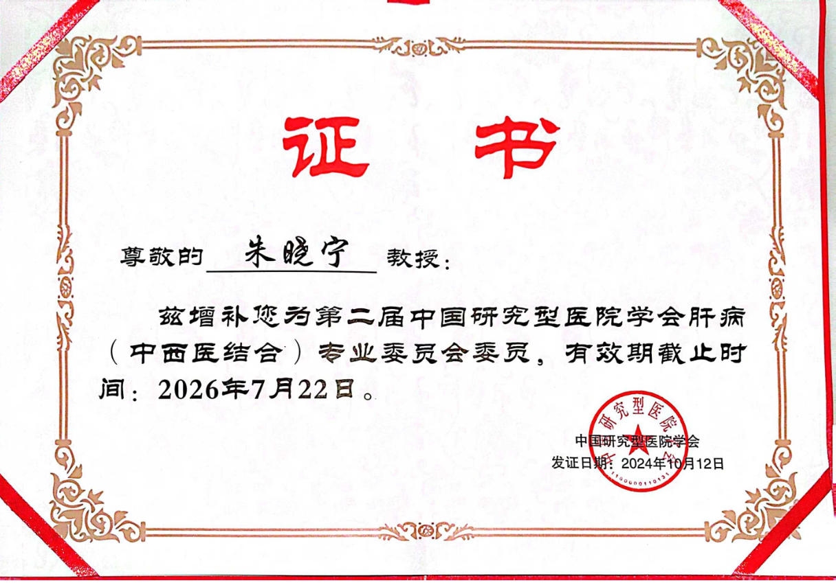 2024年10月11-13日,第九届中国研究型医院学会肝病(中西医结合)专委会学术年会在苏州举行。我院肝胆病科副主任王晓栋担任大会嘉宾主持,朱晓宁副教授、田桢副主任护师增补为该专业委员会委员。