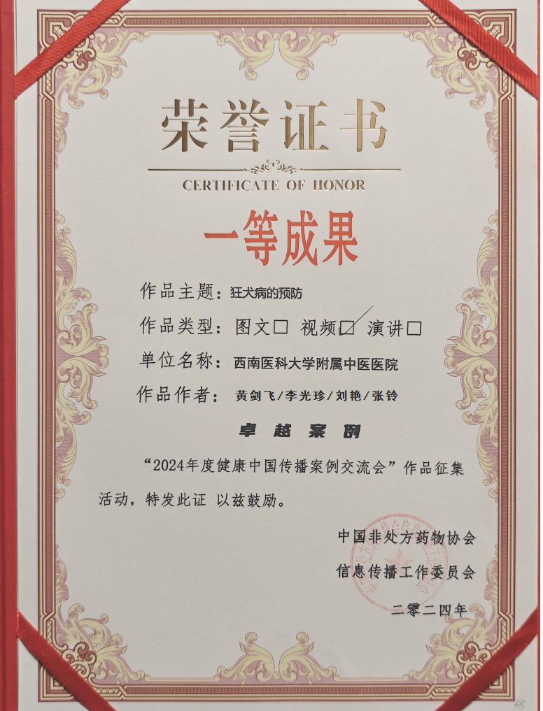 本次交流会共征集参赛作品800余例,其中入围决赛182例。经过现场专家评选,我院城北急诊科主创的科普作品《狂犬病的预防》从中脱颖而出,获得视频类一等成果奖。