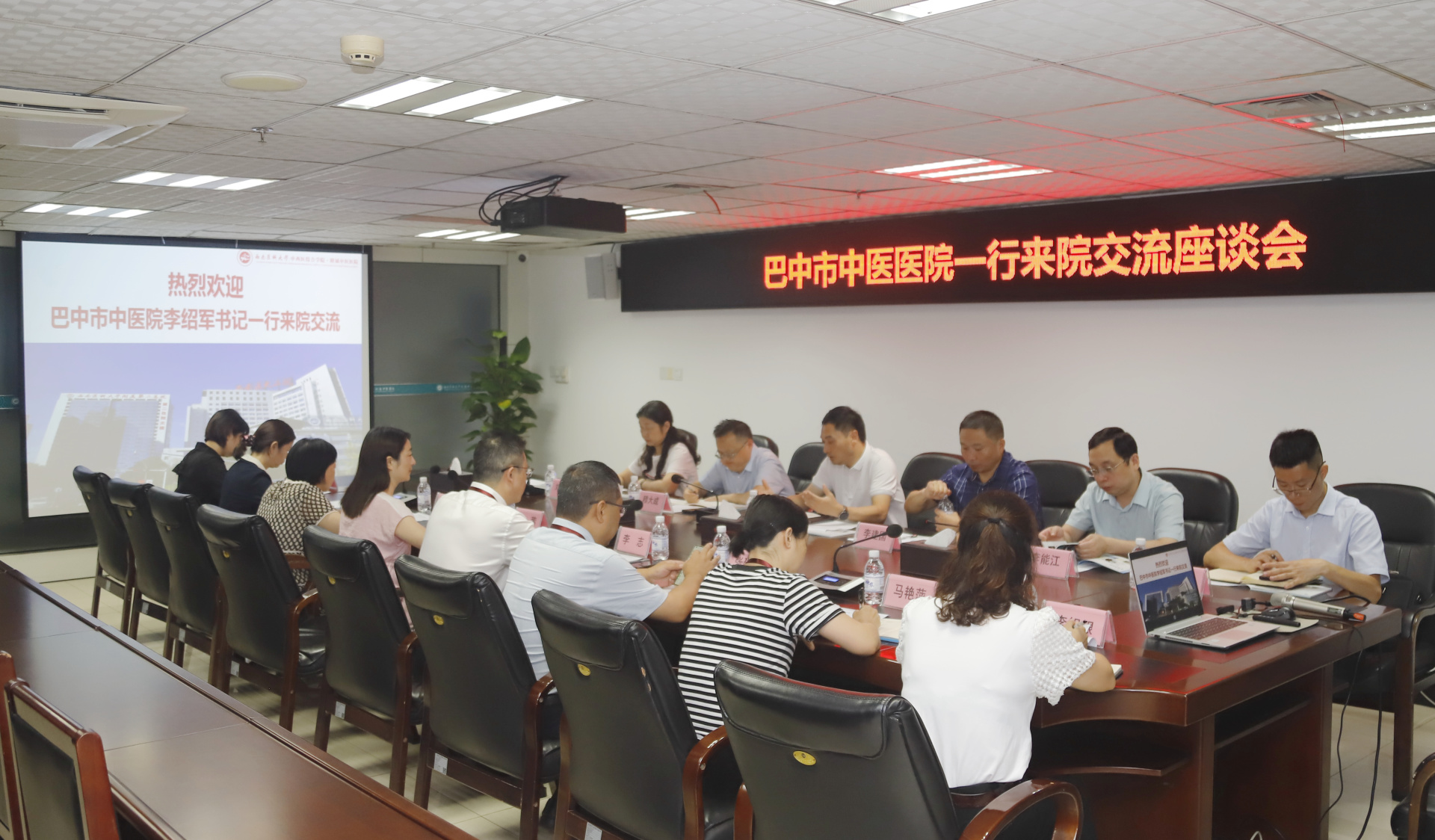 2023年8月25日,巴中市中医院党委书记李绍军、院长李建国一行来院交流,我院党委书记李志、党委副书记、纪委书记徐茜、副院长张建堂及相关职能部门负责人等参加了交流座谈会。会议由徐茜主持。