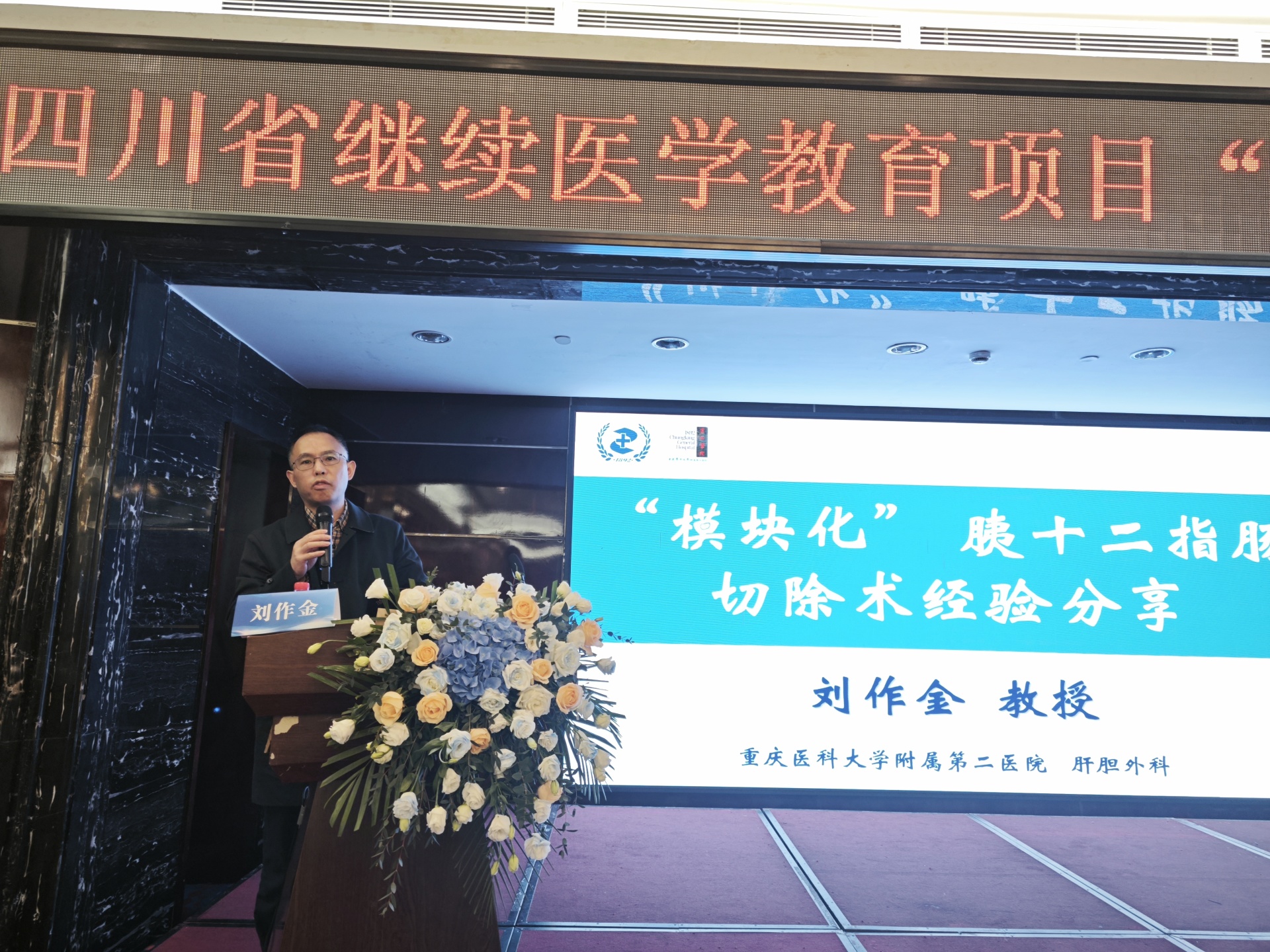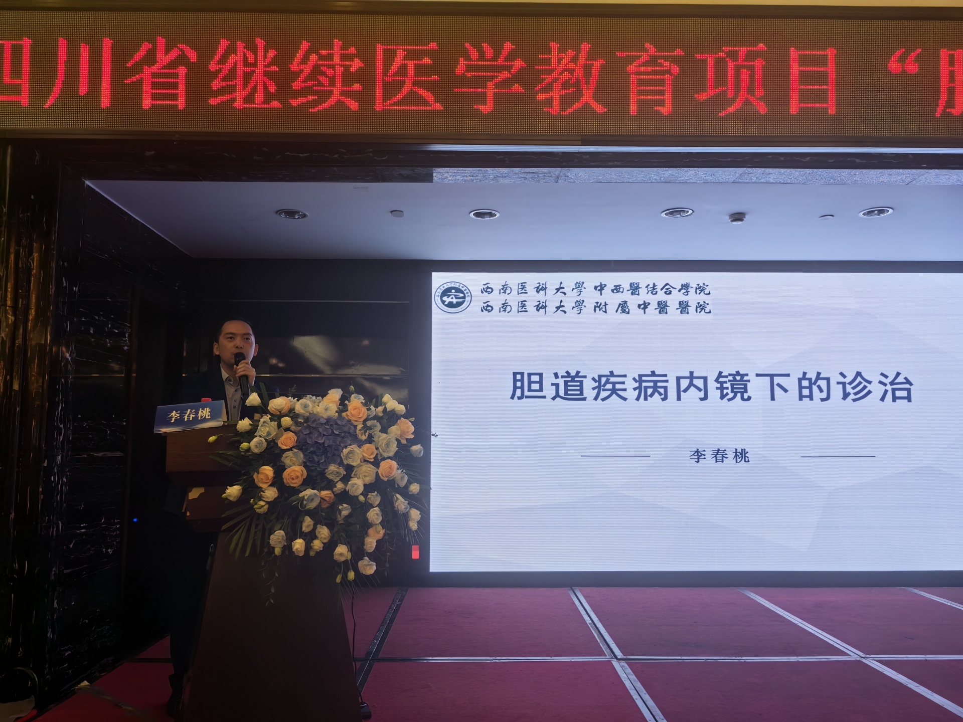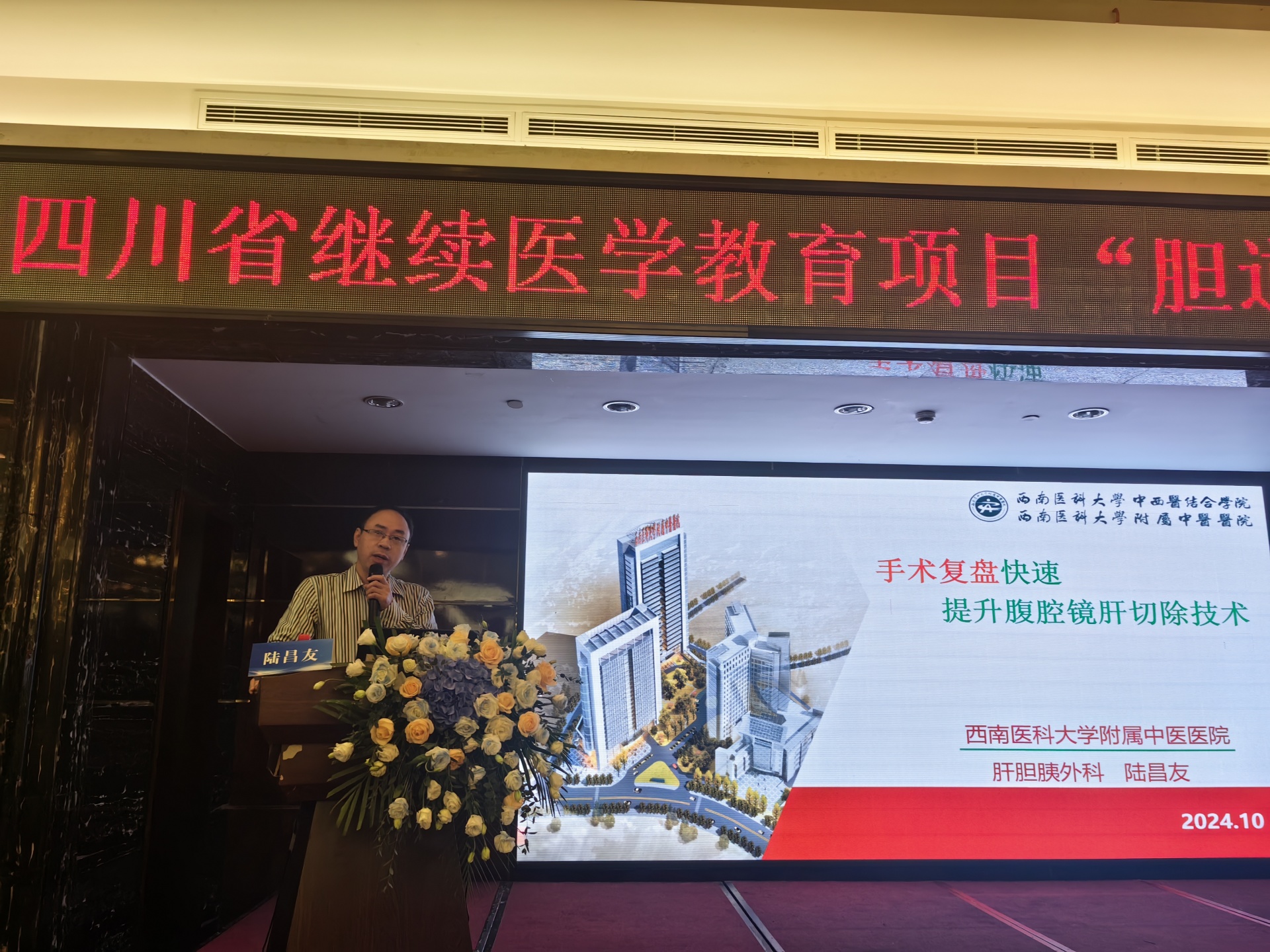 2024年10月19日,我院举办四川省继续医学教育项目“胆道微创外科新进展学习班”学术会,医院院长刘建、相关授课专家及肝胆胰外科相关专业人员参加了开幕式。开幕式由我院肝胆胰外科主任陆昌友主持。