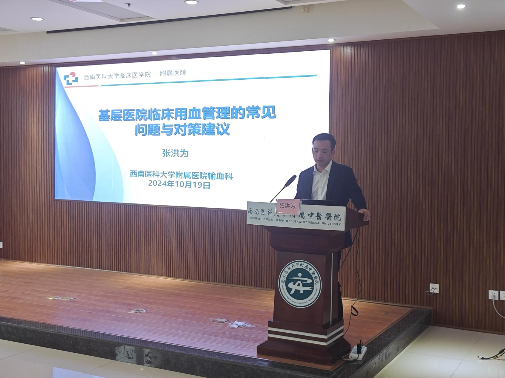 张洪为作《基层医院临床用血管理的常见问题及对策建议》专题讲座