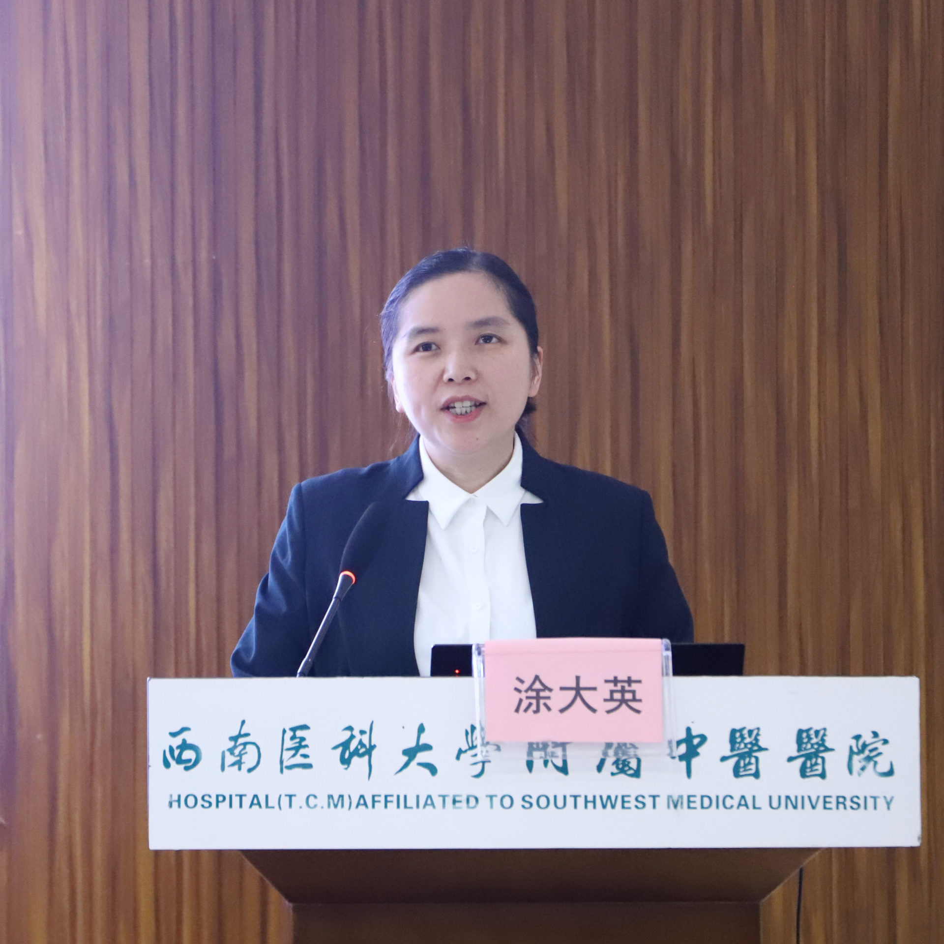 涂大英讲话。她希望通过此次交流和学习,能够加强医疗机构之间的联系与沟通,拓宽视野,相互学习,促进临床输血专业的发展,共同构建泸州临床输血交流平台。