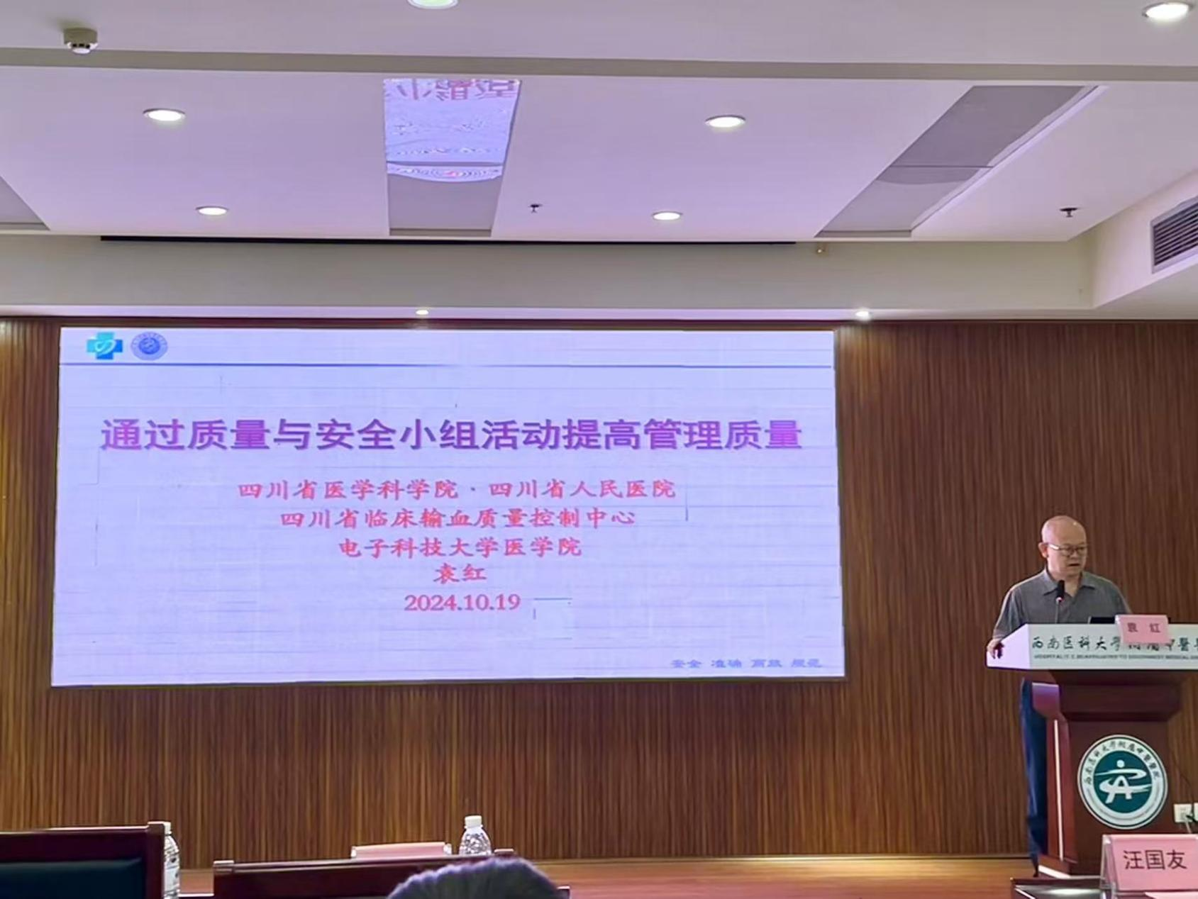 2024年10月19日,我院成功举办了2024年泸州市继续教育项目“临床输血新技术与信息化应用”的培训会班。医院副院长汪国友、泸州市医学会副秘书长涂大英、相关领域的专家以及泸州市医学会临床输血专委会全体委员和来自全省从事临床输血技术的医技人员参加了会议。开幕式由我院检验科兼输血科主任郭永灿主持。