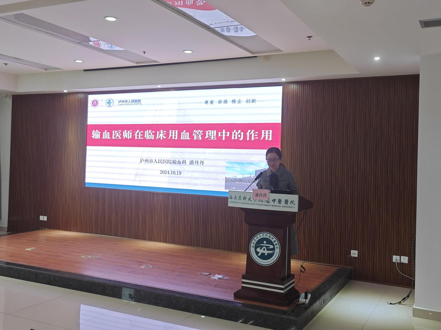 潘丹丹作《输血医师在临床用血管理中的作用》专题讲座