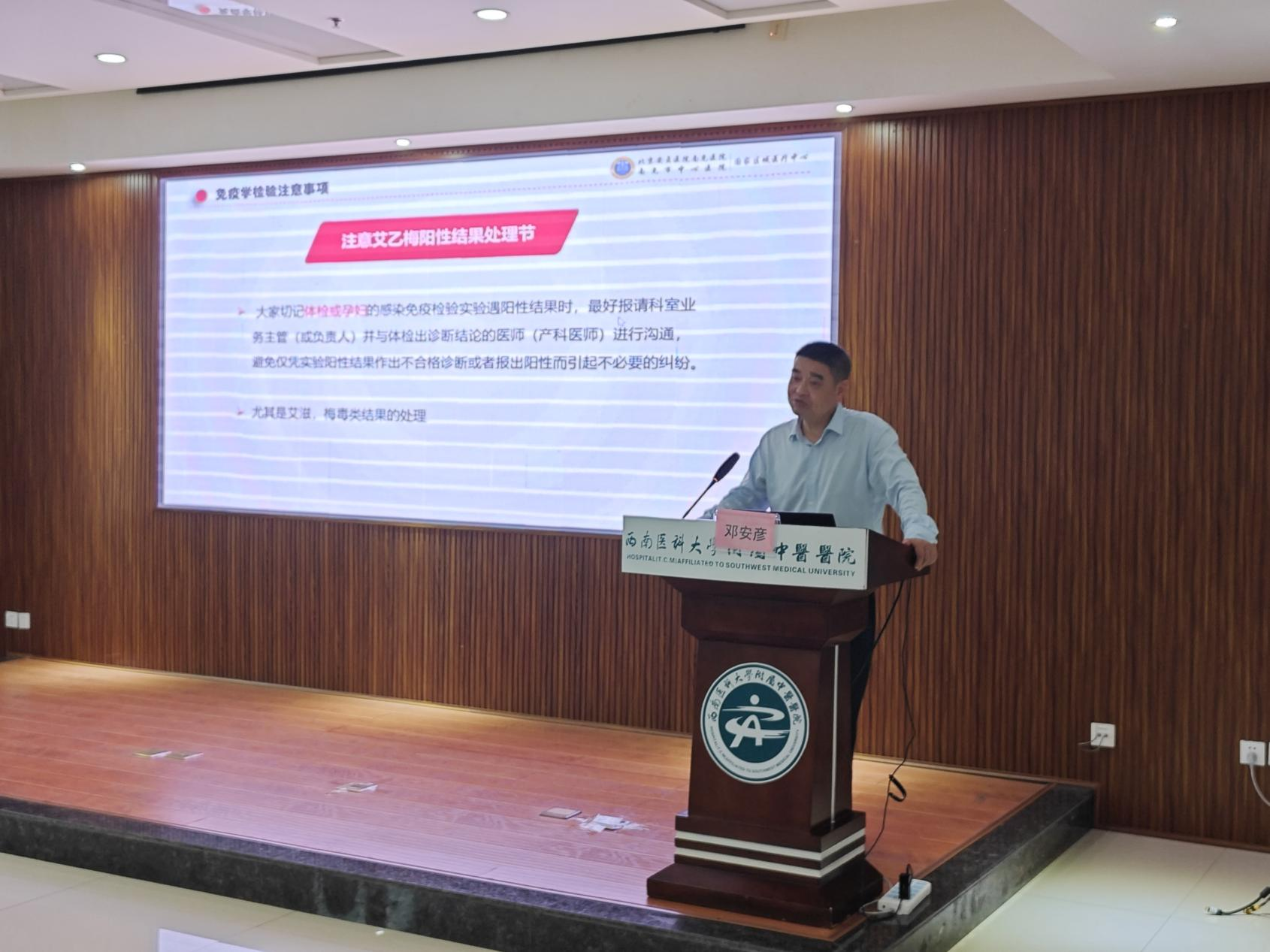 邓安彦作《输血前感染标志物检验工作体会》专题讲座