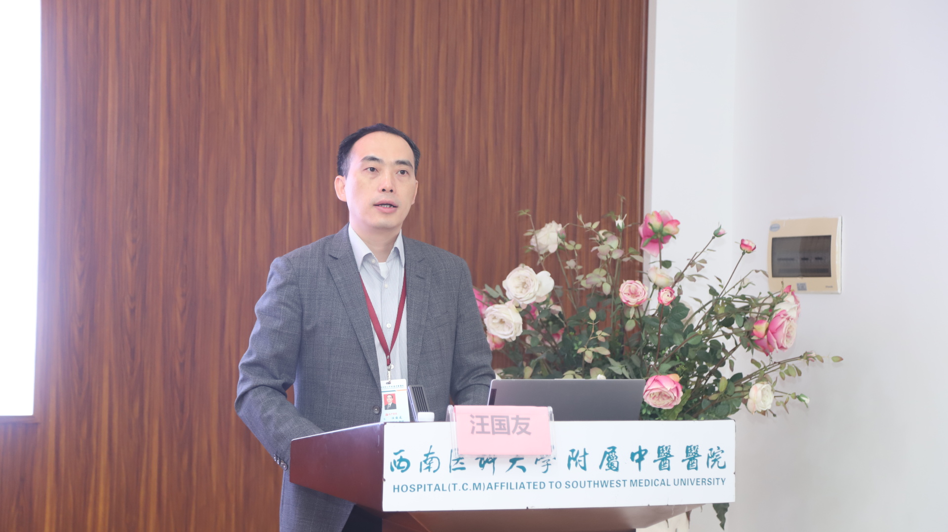 汪国友致辞。他介绍了我院基本情况及全科医学科·VIP病房·中医经典病房概况,希望与会人员以本次会议为契机,探讨中医经典理论在中西医结合全科诊疗中的应用,进一步提升全科医生临床诊疗水平和服务能力,营造“爱经典、学经典、懂经典、用经典”的良好学习氛围,做到守中医之正,创医学之新,为中医药事业传承创新发展贡献智慧和力量,更好地为广大群众健康保驾护航。