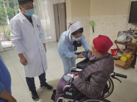 2024年10月30日,我院家庭医生团队走访慰问了签约离休干部,免费为离休干部测量了血压、血糖,进行了饮食、用药指导等。