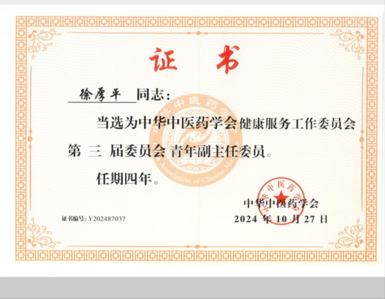 在中华中医药学会健康服务工作委员会换届选举会上,我院副院长徐厚平当选中华中医药学会健康服务工作委员会第三届委员会青年副主任委员。